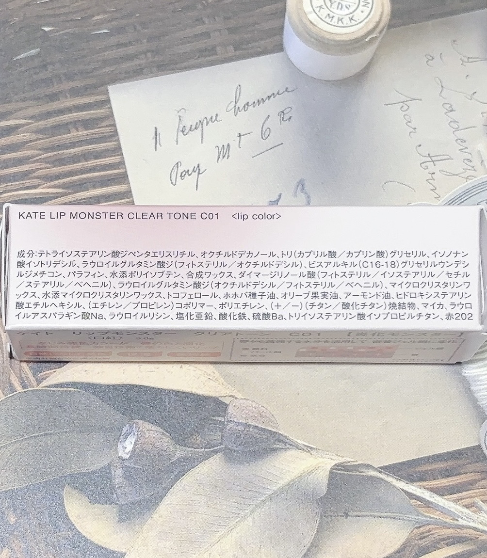 - <C01 炎化モンスター> テトライソステアリン酸ジペンタエリスリチル、オクチルドデカノール、トリ(カプリル酸/カプリン酸)グリセリル、イソノナン酸イソトリデシル、ラウロイルグルタミン酸ジ(フィトステリル/オクチルドデシル)、ビスアルキル(C16-18)グリセリルウンデシルジメチコン、パラフィン、水添ポリイソブテン、合成ワックス、ダイマージリノール酸(フィトステリル/イソステアリル/セチル/ステアリル/ベヘニル)、ラウロイルグルタミン酸ジ(オクチルドデシル/フィトステリル/ベヘニル)、マイクロクリスタリンワックス、水添マイクロクリスタリンワックス、トコフェロール、ホホバ種子油、オリーブ果実油、アーモンド油、ヒドロキシステアリン酸エチルヘキシル、(エチレン/プロピレン)コポリマー、ポリエチレン、(+/-)(チタン/酸化チタン)焼結物、マイカ、ラウロイルアスパラギン酸Na、ラウロイルリシン、塩化亜鉛、酸化鉄、硫酸Ba、トリイソステアリン酸イソプロピルチタン、赤202 <C02 肉色モンスター> テトライソステアリン酸ジペンタエリスリチル、オクチルドデカノール、トリ(カプリル酸/カプリン酸)グリセリル、イソノナン酸イソトリデシル、ラウロイルグルタミン酸ジ(フィトステリル/オクチルドデシル)、ビスアルキル(C16-18)グリセリルウンデシルジメチコン、パラフィン、水添ポリイソブテン、合成ワックス、ダイマージリノール酸(フィトステリル/イソステアリル/セチル/ステアリル/ベヘニル)、ラウロイルグルタミン酸ジ(オクチルドデシル/フィトステリル/ベヘニル)、マイクロクリスタリンワックス、水添マイクロクリスタリンワックス、トコフェロール、ホホバ種子油、オリーブ果実油、アーモンド油、ヒドロキシステアリン酸エチルヘキシル、(エチレン/プロピレン)コポリマー、ポリエチレン、ジメチコン、(+/-)(チタン/酸化チタン)焼結物、マイカ、ラウロイルアスパラギン酸Na、ラウロイルリシン、塩化亜鉛、酸化チタン、酸化鉄、水酸化Al、硫酸Ba、トリイソステアリン酸イソプロピルチタン、赤202 <C03 枝化モンスター> テトライソステアリン酸ジペンタエリスリチル、オクチルドデカノール、トリ(カプリル酸/カプリン酸)グリセリル、イソノナン酸イソトリデシル、ラウロイルグルタミン酸ジ(フィトステリル/オクチルドデシル)、ビスアルキル(C16-18)グリセリルウンデシルジメチコン、パラフィン、水添ポリイソブテン、合成ワックス、ダイマージリノール酸(フィトステリル/イソステアリル/セチル/ステアリル/ベヘニル)、ラウロイルグルタミン酸ジ(オクチルドデシル/フィトステリル/ベヘニル)、マイクロクリスタリンワックス、水添マイクロクリスタリンワックス、トコフェロール、ホホバ種子油、オリーブ果実油、アーモンド油、ヒドロキシステアリン酸エチルヘキシル、(エチレン/プロピレン)コポリマー、ポリエチレン、ジメチコン、(+/-)(チタン/酸化チタン)焼結物、マイカ、ラウロイルアスパラギン酸Na、ラウロイルリシン、塩化亜鉛、酸化チタン、酸化鉄、水酸化Al、硫酸Ba、トリイソステアリン酸イソプロピルチタン、赤202