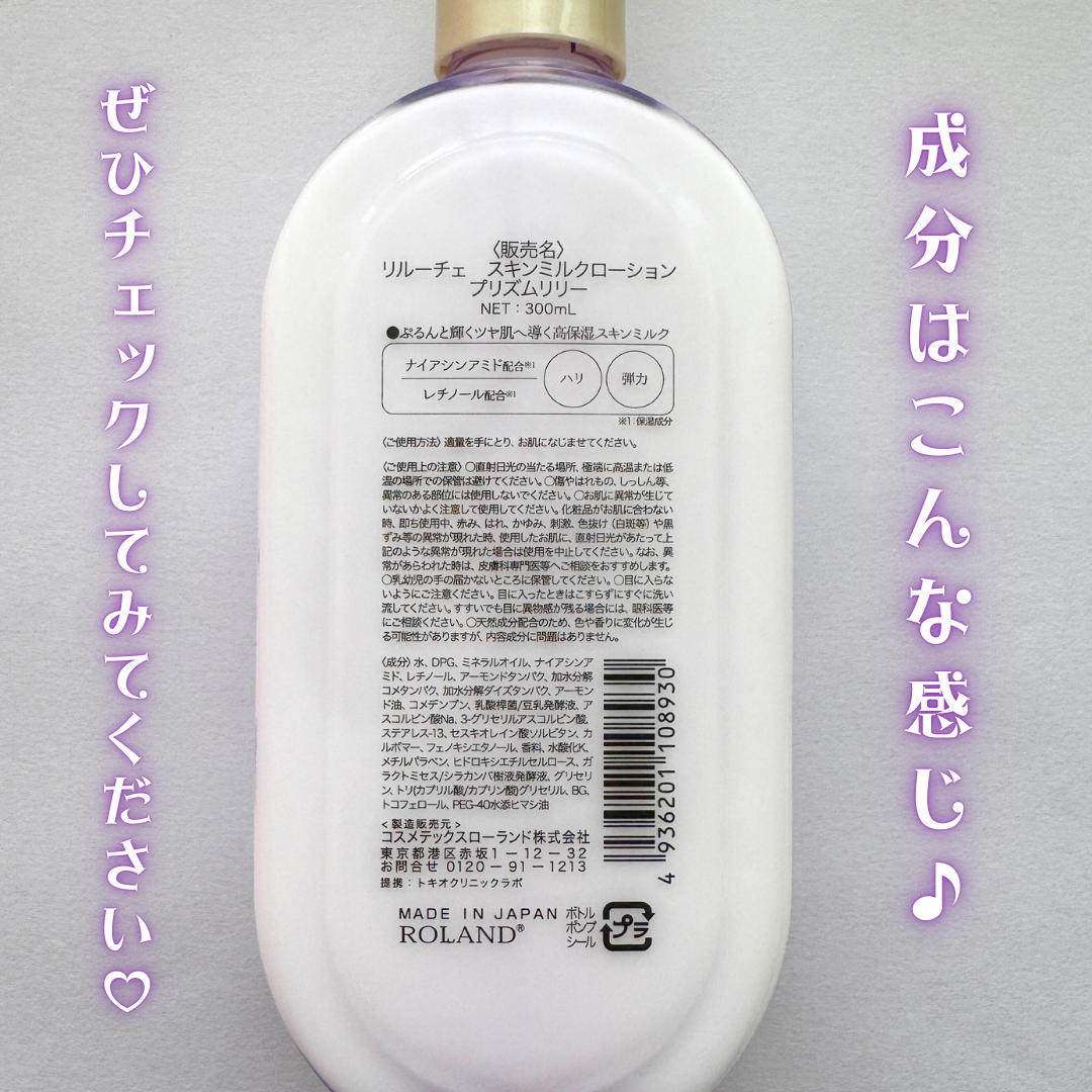 商品詳細情報コスメテックスローランド リルーチェスキンミルクローションプリズムリリー