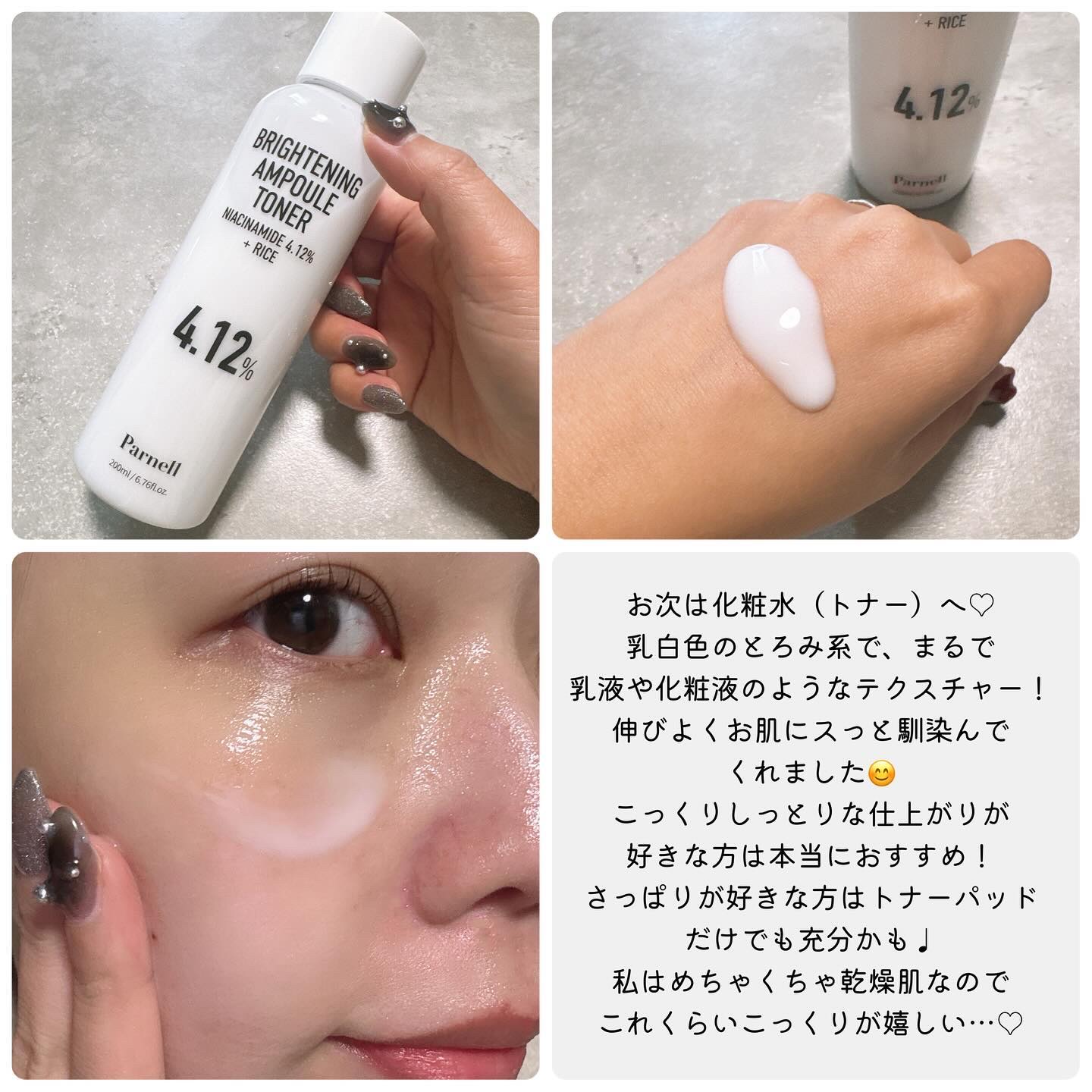 parnell ナイアシンアミド 4.12 ライス ブライトニング アンプルトナー (美白機能性) | 3,250円 |