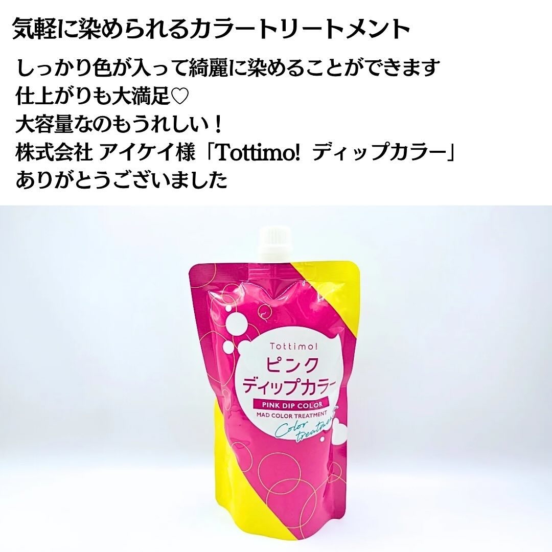 ダメージケア成分が210%アップ!! カラーやブリーチで明るくなった髪を最短3分で鮮やかに染めるカラートリートメント💜 ダメージケアもしながら手軽にカラーできるのが魅力的😌✨️ 柔らかいテクスチャーだから伸び広げやすくムラなく塗布出来るよ🙆♀️ 500gの大容量なのに1980円と良心的なお値段😌 Tottimoにはカラーシャンプーもあって併用して使うことでさらに色持ちアップ↑
