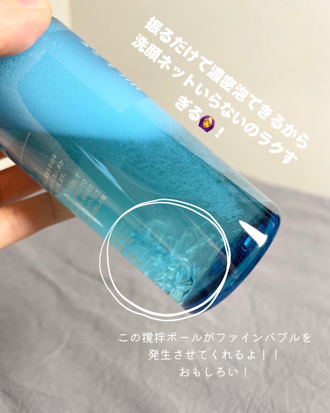 振って、ポンプを押すだけで綺麗な泡🫧 振ってファインバブルを発生させた細かいモコモコ泡で洗えるから擦らないで優しく洗えるの〜! 香りも柑橘系で気分もすっきり♡ 洗い上がりはしっとりしていてつっぱらないのも良かったポイント♪ 押すだけで綺麗な泡が出てくるから時短だし、楽だし、仕上がりもいいわで ズボラな私にはありがたい商品だ🥲