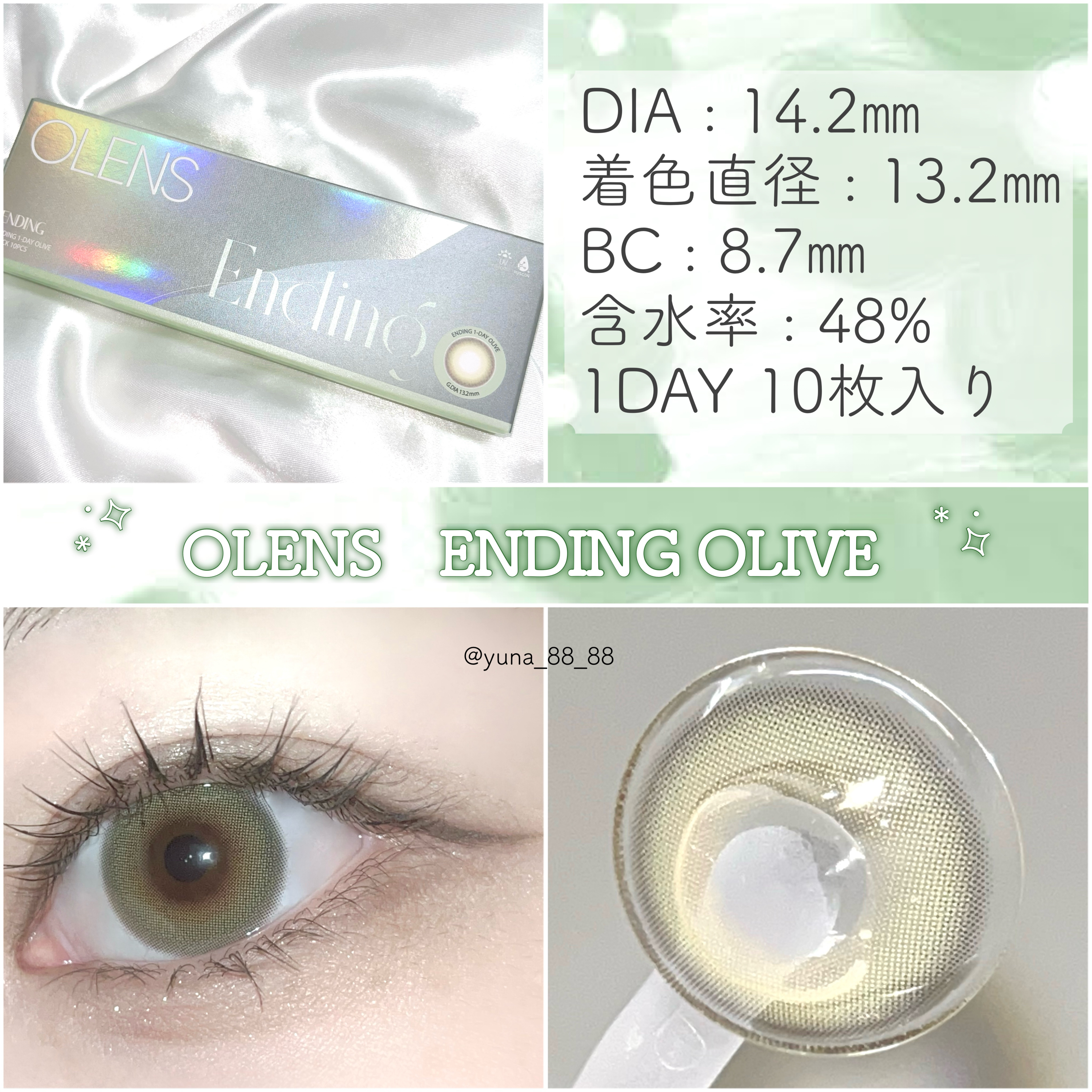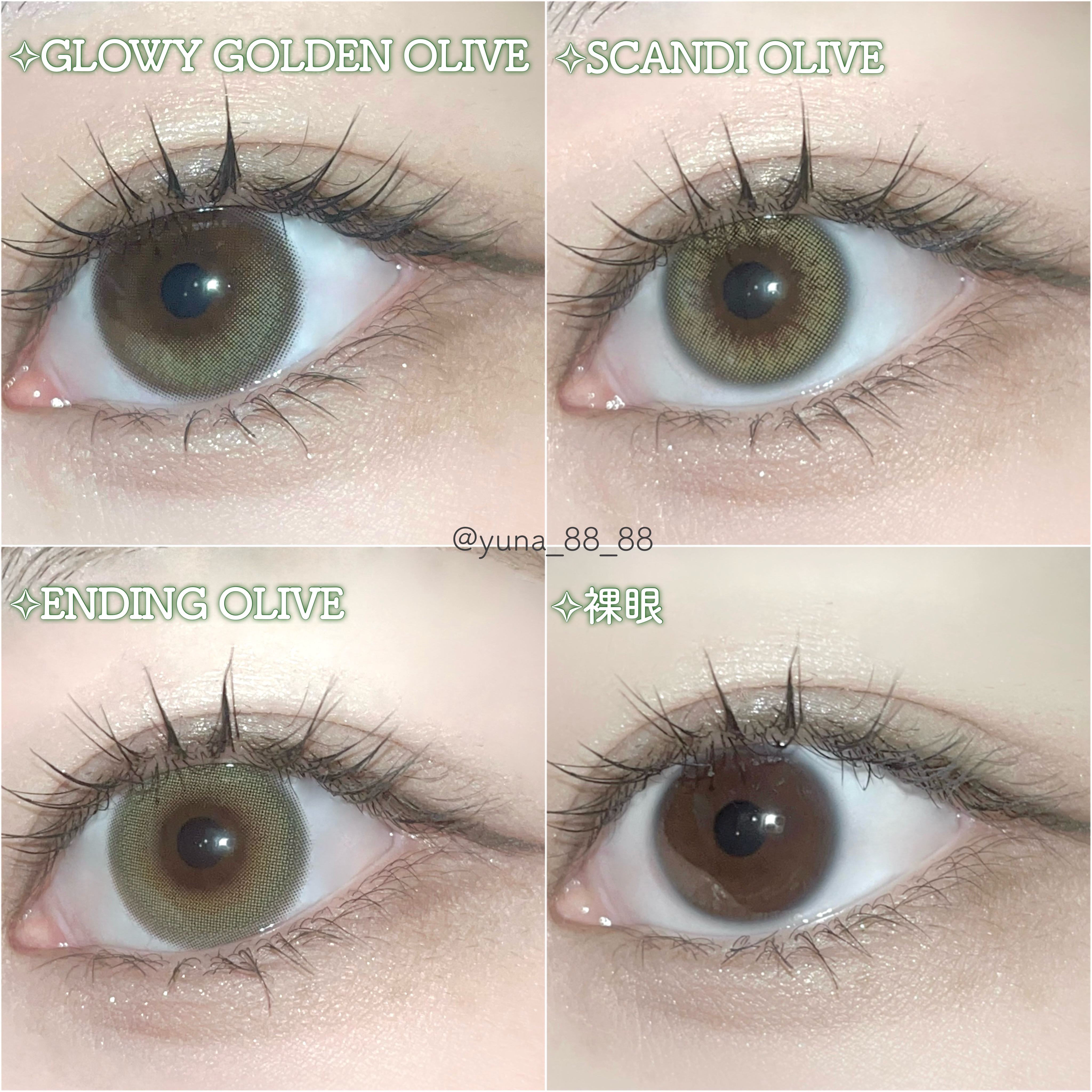 このオリーブはコスプレ感もなく使えて、浮かずに馴染むから可愛いよーー🍀 やっぱりGlowyが1番すき。 裸眼風に溶け込み神秘的な印象しっかりオリーブ感だしたいならこれ。