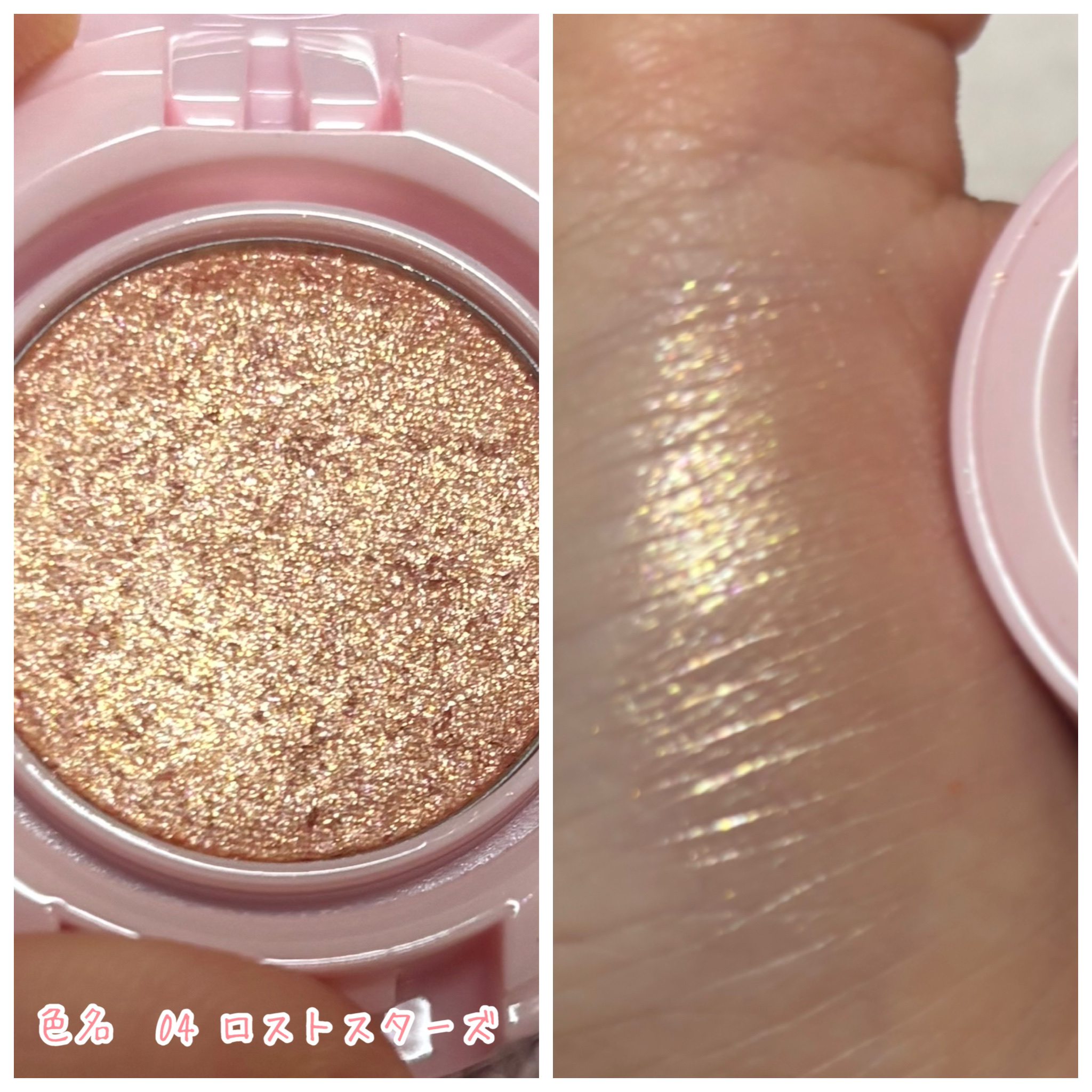 - ただのキラキラアイシャドウではない、多彩な色味・様々な大きさのグリッター構成でデイリーメイクの爽やかなポイントに。 <01 バブリー> 柔らかなベビーピンクと多彩な偏光ラメで目元・涙袋に愛らしさをプラス。ブルべの方におすすめ! <02 シャルウィピーチ> ロージー色のベースにほのかなゴールド・レッド・グリーン・ブルーのパールが繊細に混ざりあう、絶妙カラー。 <03 モダンタイムス> ゴールドのベースにシルバーとブルーのグリッターをあしらった、落ち着いた雰囲気のゴールドダイヤモンドカラー。 <04 ロストスターズ> コーラルのベースカラーにゴールドとホワイトパールが調和した、イエベの方におすすめのカラー。 <05 ブラックスワン> 華やかな大きめグリッターが存在感を放つ、肌なじみの良いブラックバイオレットカラー。ポイントメイクにおすすめ! <06 ホワイトスワン> 華やかな大きめグリッターが存在感を放つ、ピンクゴールドカラー。涙袋やポイントメイクにおすすめ! 2024年3月14日先行販売