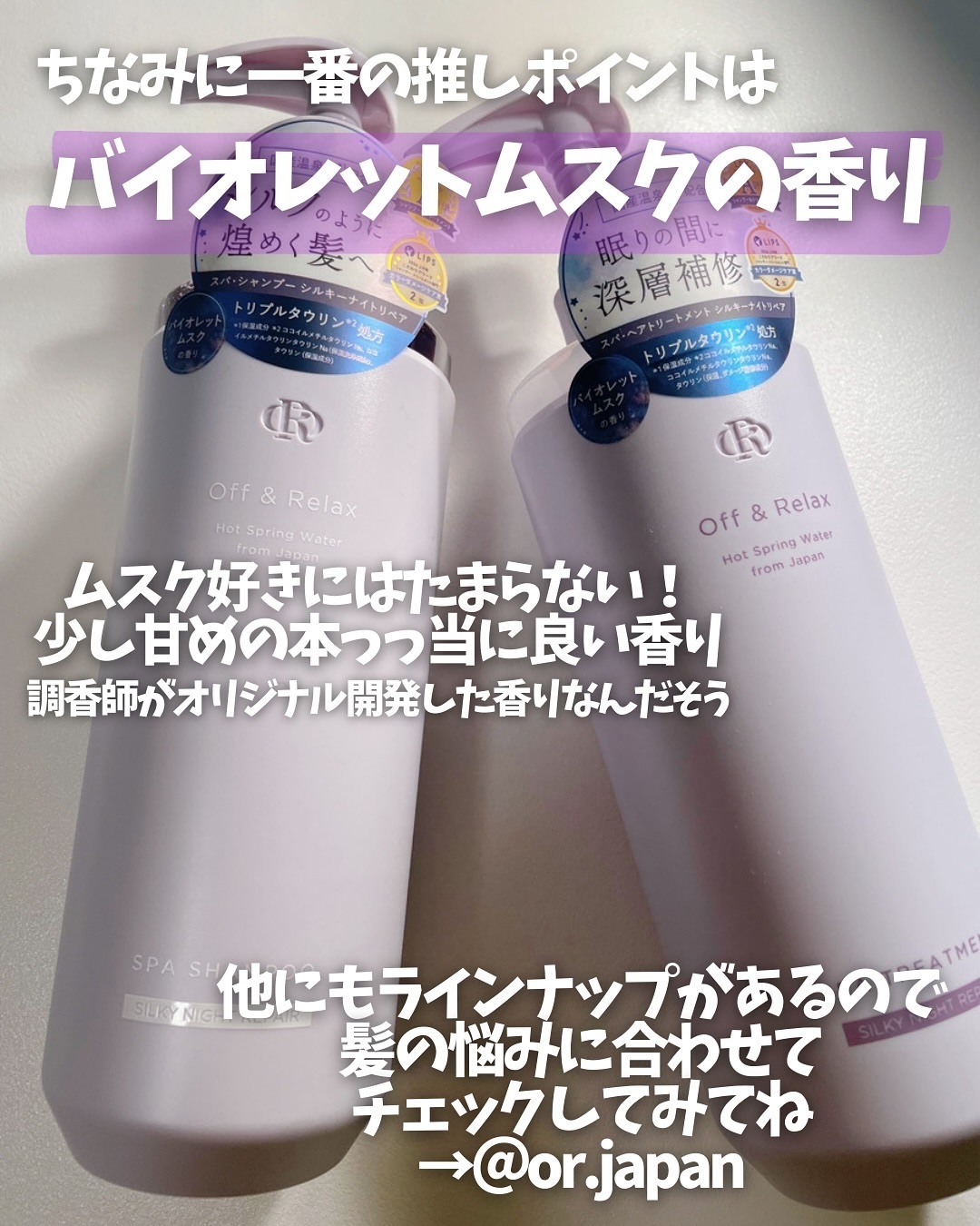 商品詳細情報Off&Relax OR スパ・シャンプー/ヘアトリートメント シルキーナイトリペア