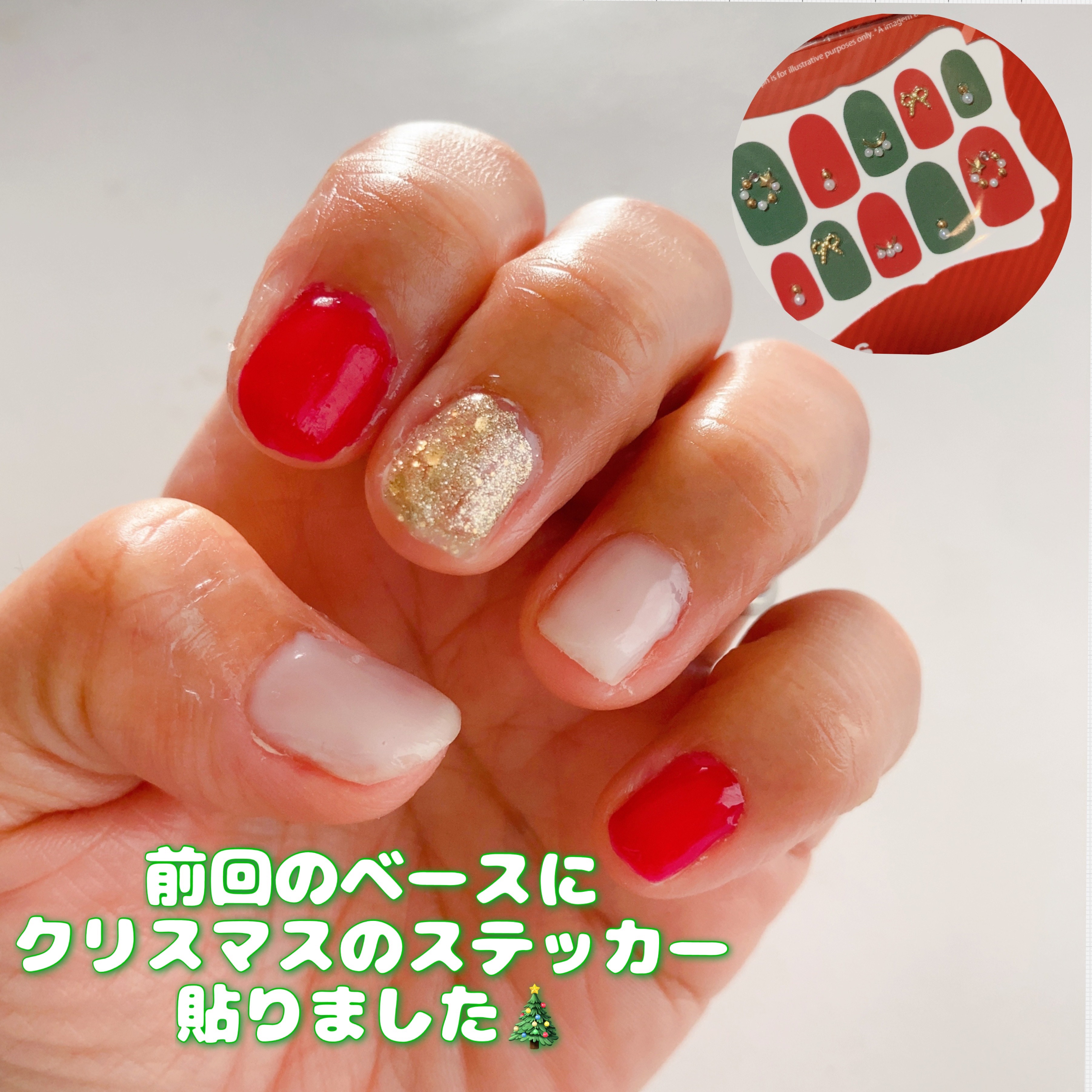 クリスマスツリーとリースを親指に、 きらきらとリボン乗せてクリスマスネイル完成🎄.* #セルフネイル #ジェルネイル #セルフジェルネイル #ネイルケア #冬ネイル #ニット映えネイル