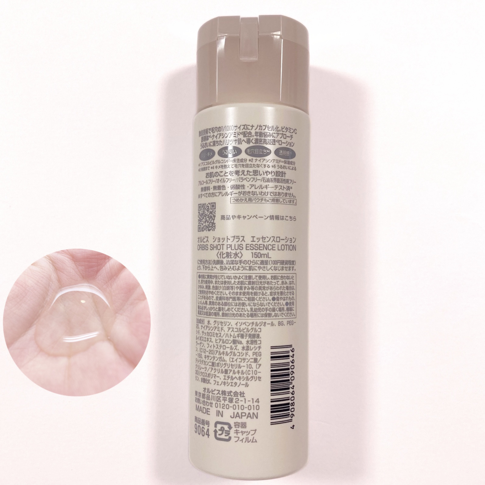 - 「ORBIS SHOT PLUS(オルビス ショットプラス)」には、肌に必要な保湿成分を届ける力(=SHOT)、そしてオルビスが培ってきた、ビューティの可能性を信じ「美しくなりたい」という想いに寄り添い、その先の肌の美しさまでも約束していく(=PLUS)、という想いを込めています。 そして今回、ポーラ化成工業の 90 年の化粧品開発研究から得た、エイジングケア*1知見を結集。美容保湿成分を早く・角層隅々まで届けることで、気になる乾燥・ハリ・くすみ*2など、年を重ねるごとに気になるエイジングサイン*3を狙い撃つ高浸透*4エイジングケアシリーズです。エイジングサインへ角層隅々まで美容成分を届けるナノ NC デリバーカプセル*5の力で、肌に乗せた瞬間、美容保湿成分がぐんぐん浸透*4してくれる濃密な“濃ぃじゅわ”化粧水です。肌のくすみ*2やハリ低下など、悩み*2の元に寄り添いながらケアしてくれます。 *1 年齢に応じたお手入れ *2 乾燥による *3 乾燥・ハリ低下 *4 角層まで *5 フィトステロールズ、水添レシチン、(C12-20)アルキルグルコシド=基剤
