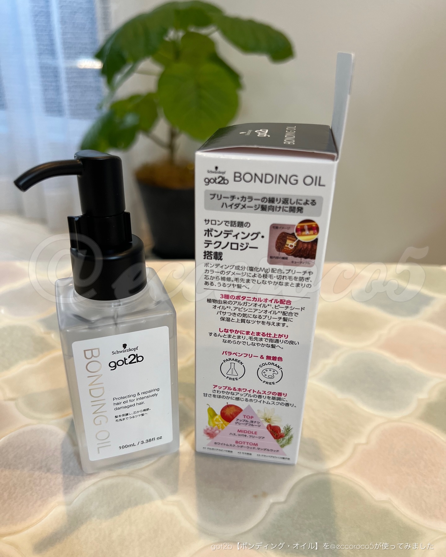 - サロン級の集中補修!ハイダメージ髪用ヘアオイル ブリーチやカラーを繰り返したハイダメージ髪向けに開発 〇サロン発のボンディング・テクノロジーを搭載。芯から補修・髪を保護し、毛先までうるとぅる髪へ 〇3種類のボタニカルオイル(植物由来のアルガンオイル*¹、ピーチシードオイル*²、アピニシアンオイル*³)配合。パサつきの気になるダメージ髪に保湿と上質なツヤを与えます 〇パラベンフリー&無着色 〇アップル&ホワイトムスクの香り *¹アルガニアスピノサ核油 (保湿) *²モモ核油(保湿) *³クランベアビシニカ種子油(保湿)