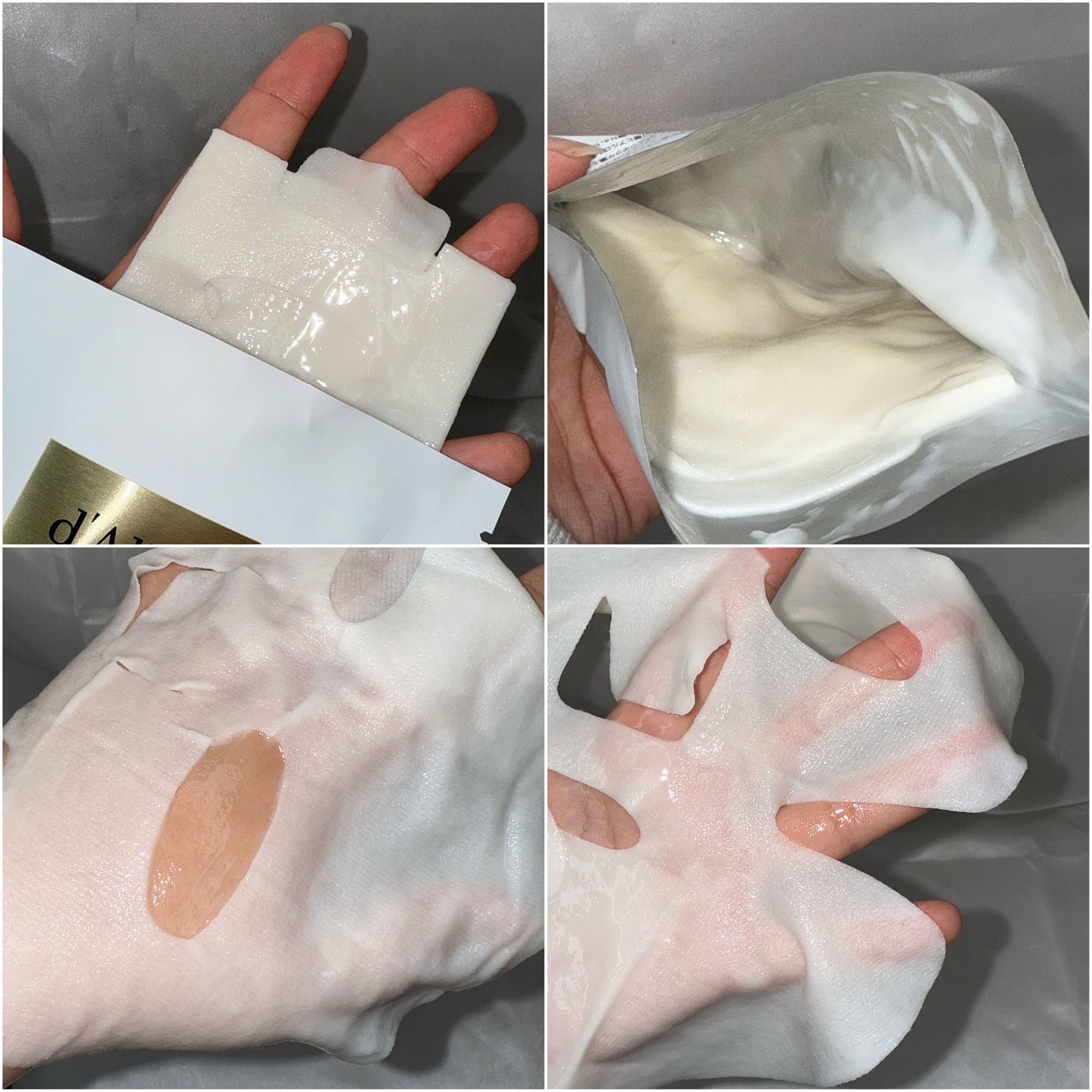 イタリア産ホワイトトリュフが肌に水分を供給し肌を整える✨️ ざらついて乾燥の気になる肌をなめらかでツヤのある肌に導きます! 高級感あるパッケージに、顎の下まで覆えるほどの大判シート🫶🏻 美容液はこっくりとした乳液タイプでたっぷり入ってる🥰 密着感のあるシートは目や鼻の横までしっかり覆える!美容液はとろっとしたジェルっぽい感じで、ベタつかずしっとり💖
