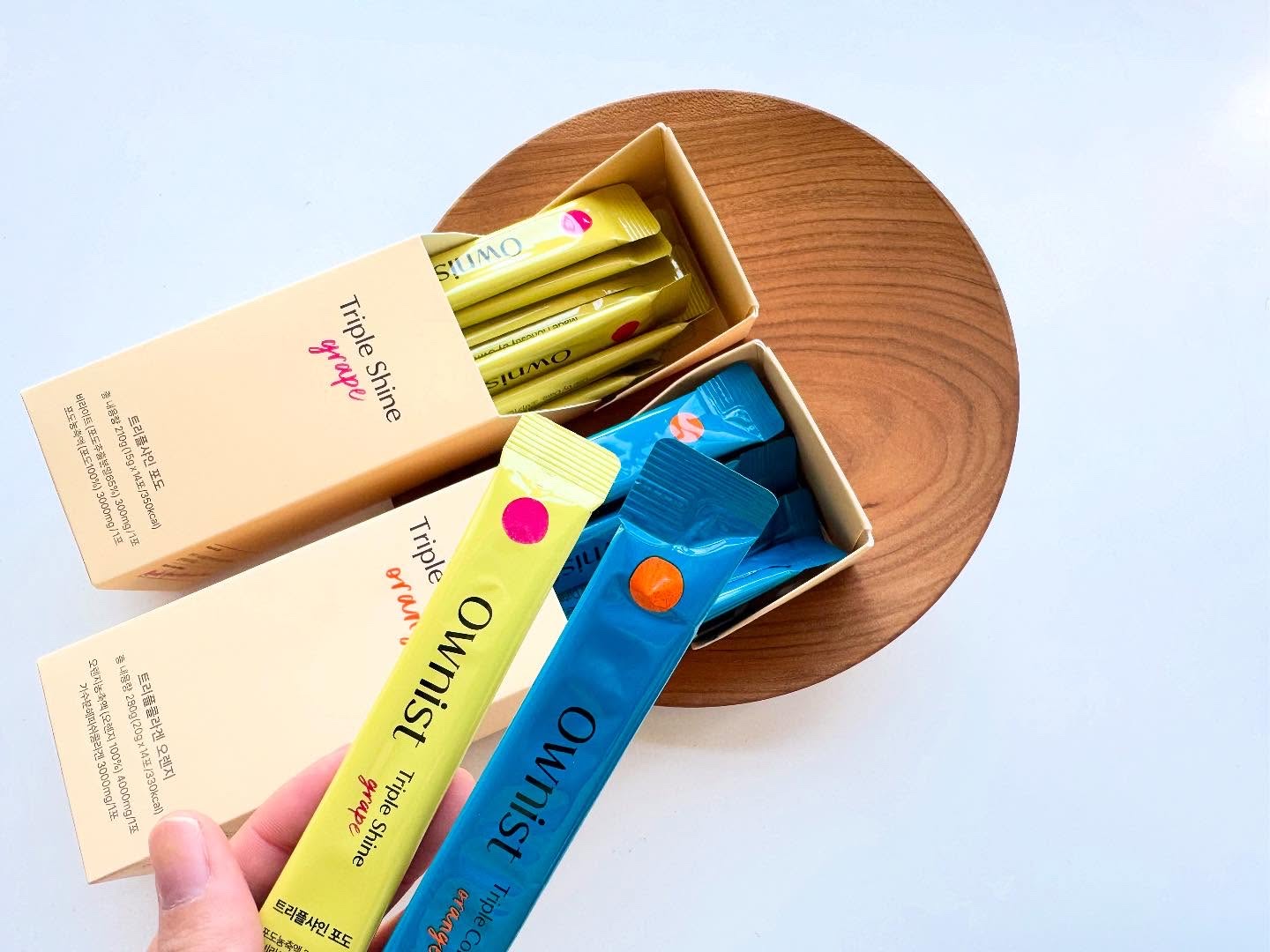 “飲む”と“食べる”で楽しむインナーケア✨韓国発インナーケアブランド【Ownist(オニスト)】《トリプルコラーゲンオレンジ》《トリプルシャイングレープ》をお試ししましたよ~🍊🍇どちらもスティックの個包装タイプで、コンパクトだから外出先でもサ...