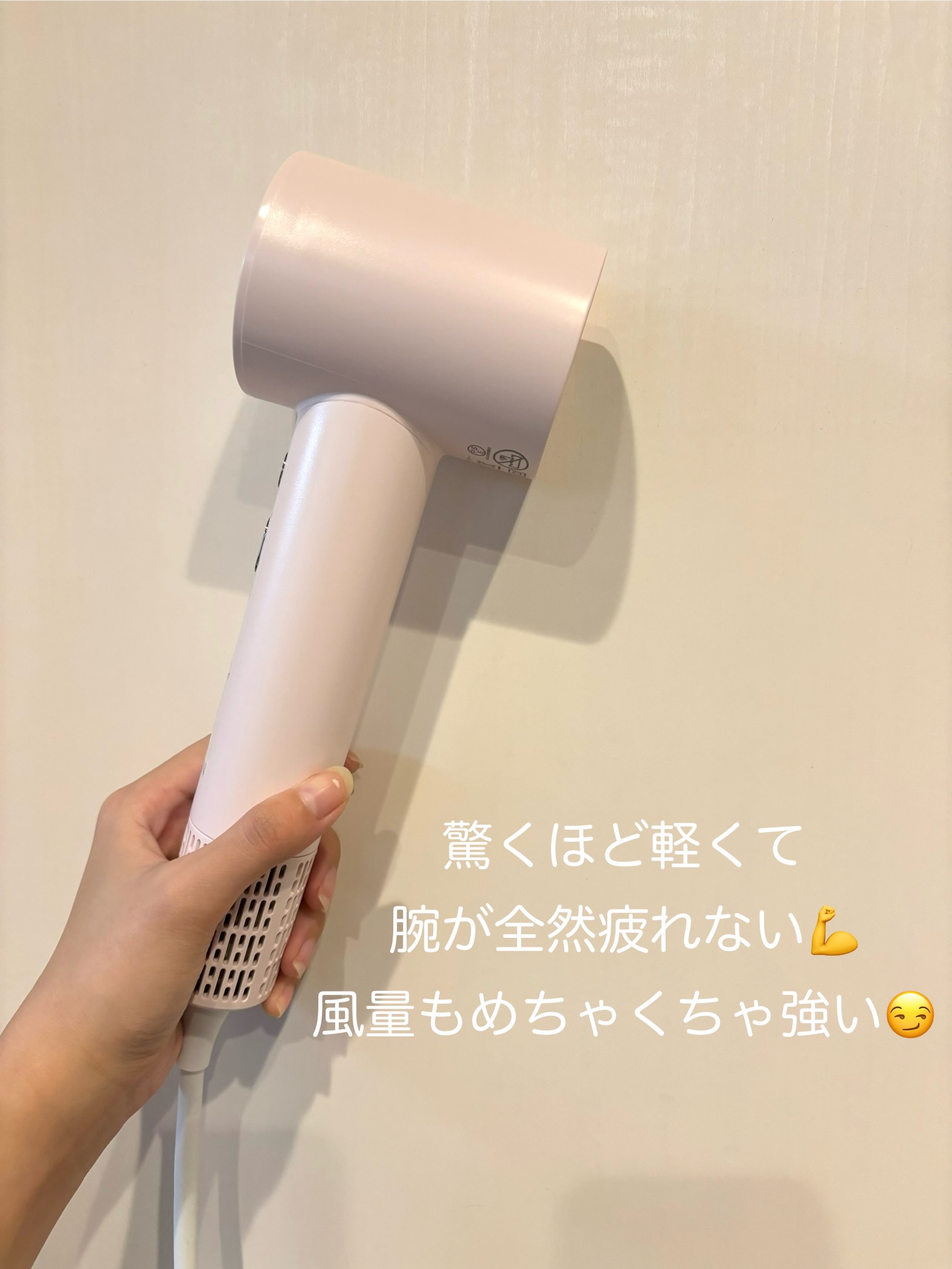 速乾X美髪ドライヤー!ドライ時間を短くしたい、軽くて疲れないドライヤーがいい、髪のパサつきが気になる、そんな方にぴったりなのがこちら☺️ 4m³/minの大風量で速乾を実現、2億マイナスイオンで素早く髪と頭皮をダブルケア。熱に頼らずより速くうるツヤ髪へ導きます✨ デザインもスタイリッシュでおしゃれー❤️持ってびっくり、めちゃくちゃ軽いです。風量すごくて乾くのが早い、冷風モードもワンタッチで切り替えられるのでお手軽。