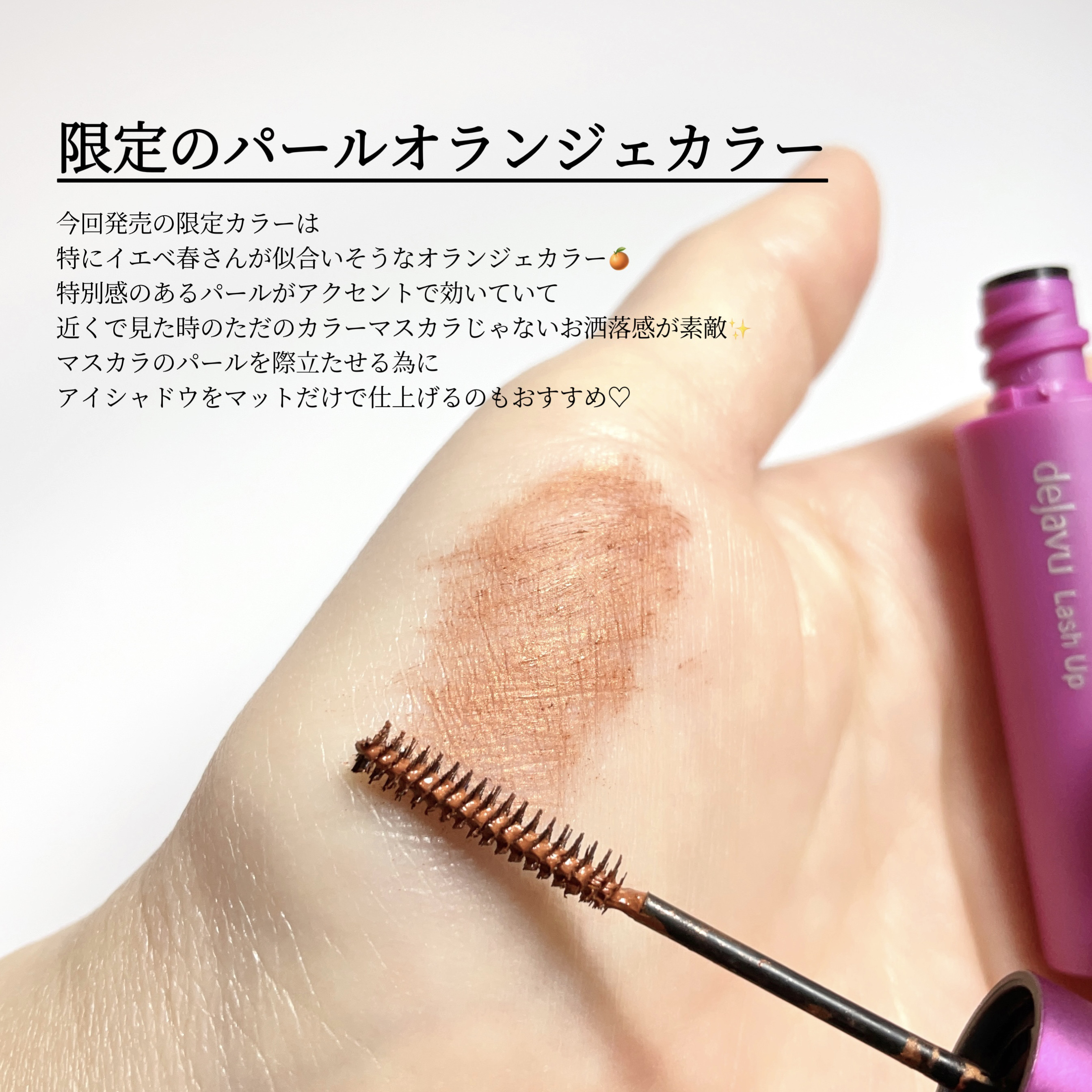 今回の限定カラーは、オレンジメイクが大好きな私にドンピシャで刺さる《パールオランジェ》🍊 メタリック質感のオレンジブラウンがホリデーシーズンにもぴったり!🎄 オレンジパールがきらめいて華やかな印象になります🥳 『超極細三角ブラシ』で細かい部分のまつ毛を1本も逃さず塗りやすい✨ 定番色のブラックと組み合わせて使うのもおすすめᐠ( ^ᐤ^ )ᐟ🌟