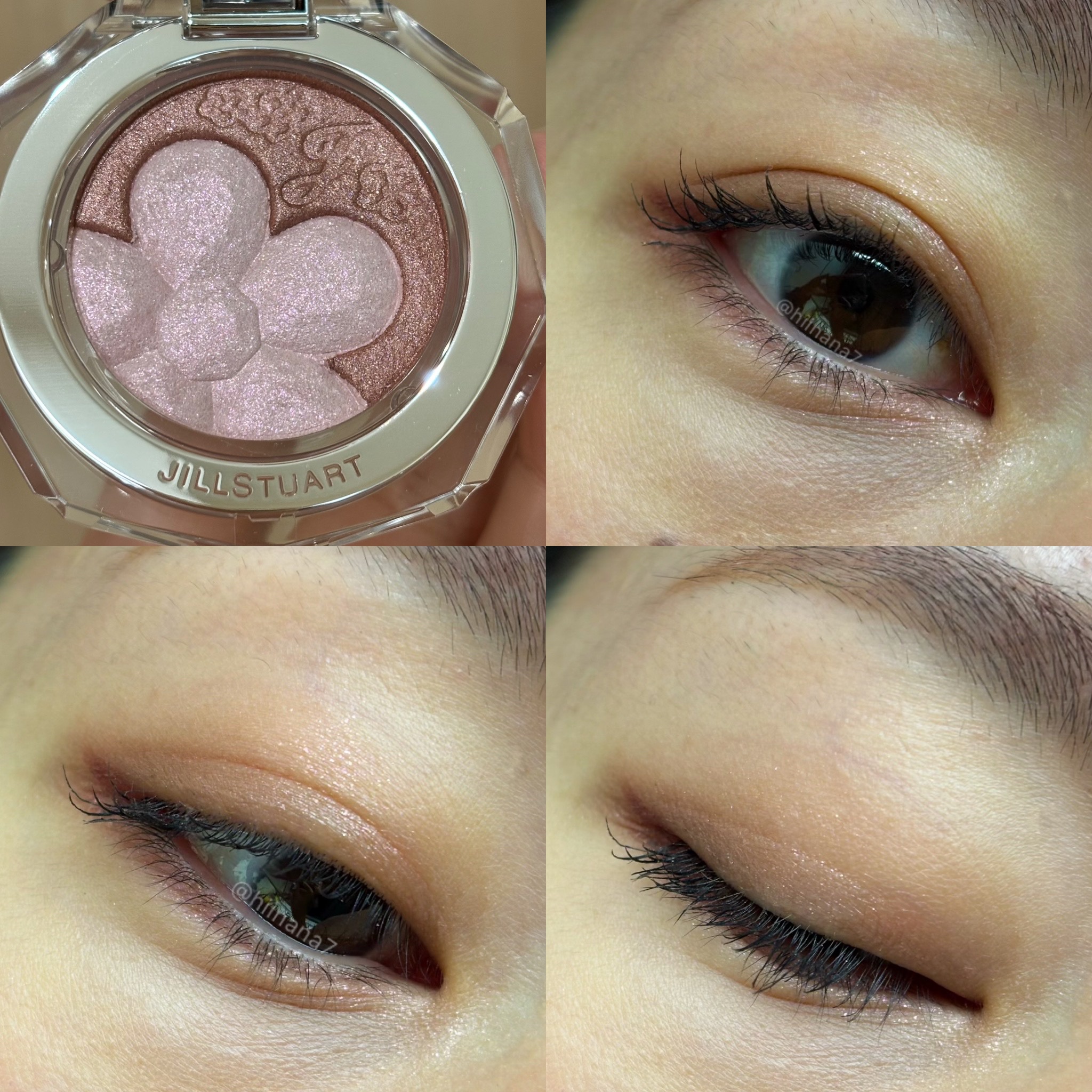 10はブルーパールとピンクブラウンの組み合わせ。これはどちらの色も淡い感じで締め色が必要な方には1つで仕上げるのは難しいかなという感じ。 偏光ラメはとにかくキラキラとして可愛いなと感じますがまぶたの上でギラつくことは無いので使いやすさは変わらずです。 個人的には単体で使うのは難しいので他のアイシャドウと合わせて使って目頭側の明るめの色として使いたい時や少し明るさを足したい時に使っています。