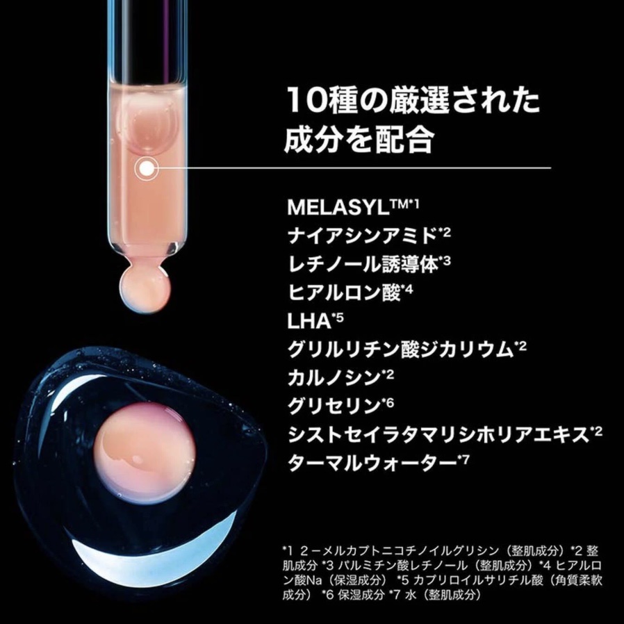 - 18年の研究で10万種から厳選された日本初上陸※独自成分メラジル*¹配合のブライトニング*²美容液が誕生しました。 ※ロレアルグループ内製品において日本で販売する製品として最初に配合されていること 肌濁り*³に、光を放つ 先進的*⁴ブライトニング*²美容液 独自成分MELASYL*¹(メラジル)×高濃度ナイアシンアミド*⁵×レチノール誘導体*⁶ 肌濁り*³にアプローチする独自成分MELASYL(メラジル)*¹含む10種の厳選された成分配合。 全てのスキントーンの肌濁り*³を防ぎ、光を放つような透明感肌に導きます。 *1 2-メルカプトニコチノイルグリシン(整肌成分) *2 うるおいを与え、輝き感のある肌にすること *3 乾燥によるくすみ *4 当社比 *5 整肌成分 *6 パルミチン酸レチノール(整肌成分) 2024年8月29日(木)全国新発売 2024年6月11日(火):公式オンラインショップ先行発売 2024年7月25日(木):一部企業先行発売