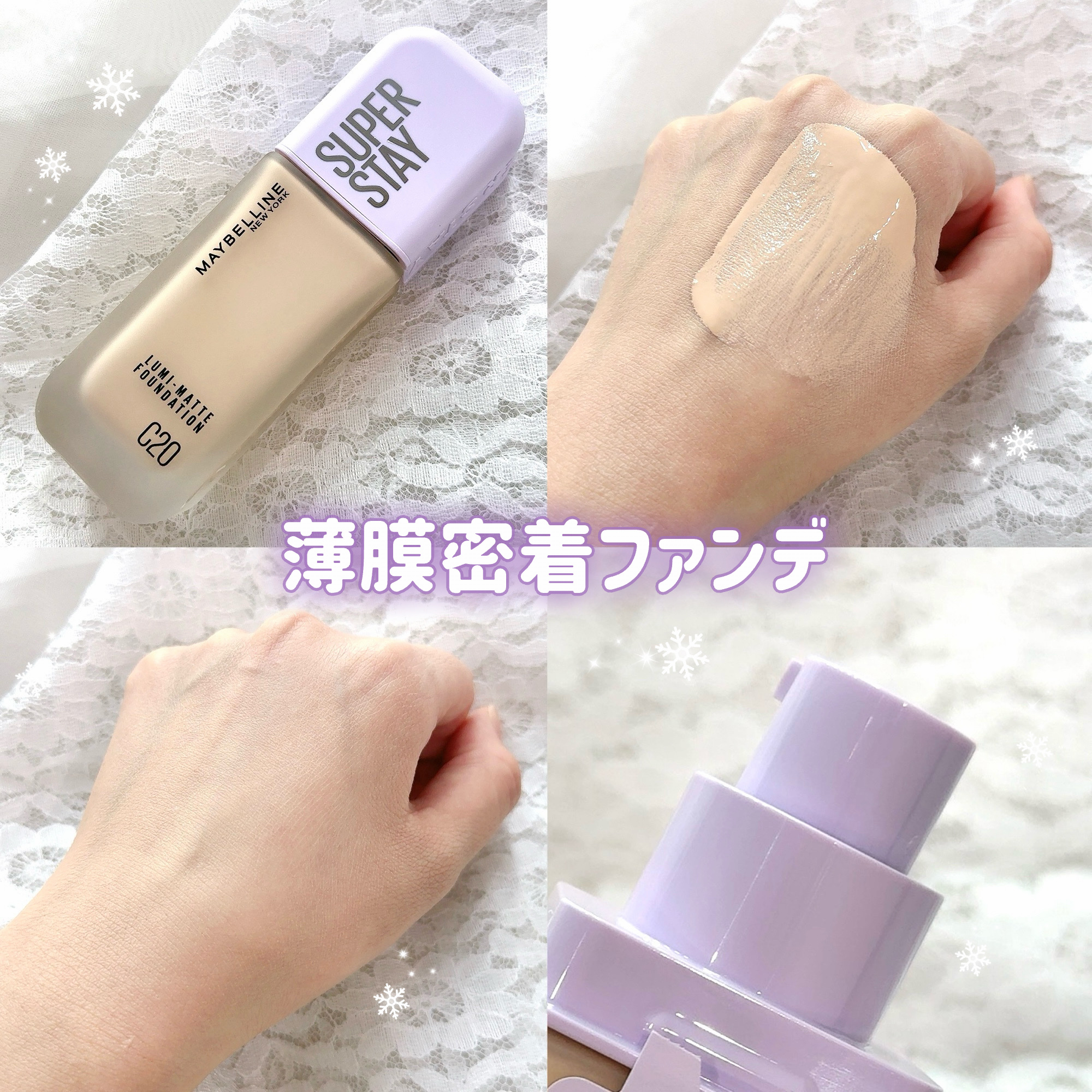 乾燥する冬でも、超うす膜でうるおいを逃さず密着するファンデーション✨ ナイアシンアミド*1が配合されているから負担感がないのもポイント! 厚塗り感なくニキビ跡やうすいシミもしっかりカバーできました🙆♀️