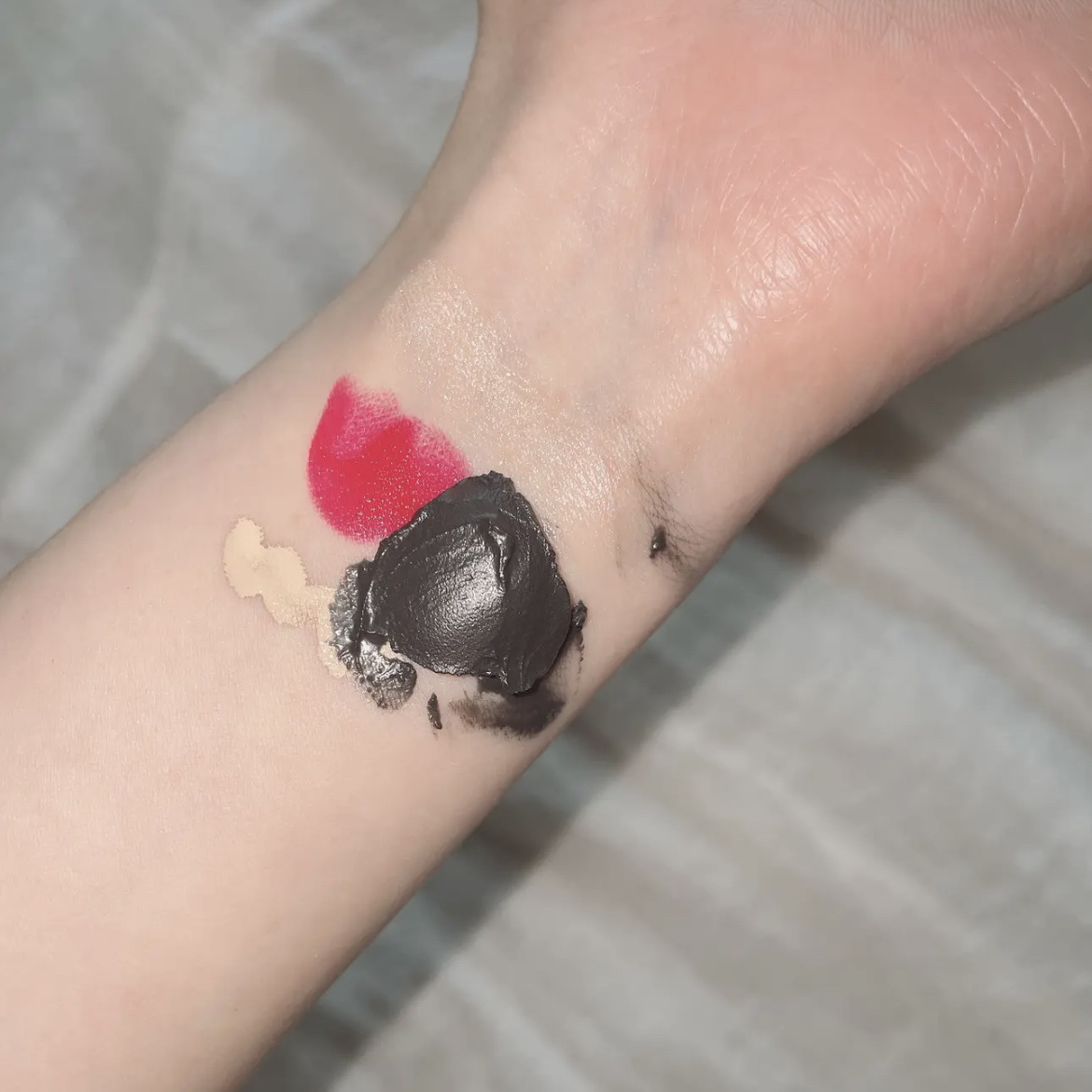 すごく高品質というかこれがプチプラ?というようななめらかさで「これはバズるはずだ〜!」という感想でした🥴 色は勿論、肌色を補正してくれるけどなめらかなので乾燥しにくくて、薄く載せられるのでクマがある身としては非常に嬉しいです🙌🏻 お気に入りは04ピンクベージュトリックで上の白いところはハイライトなんですが、下のピンクは青クマ隠しにぴったりでした💞