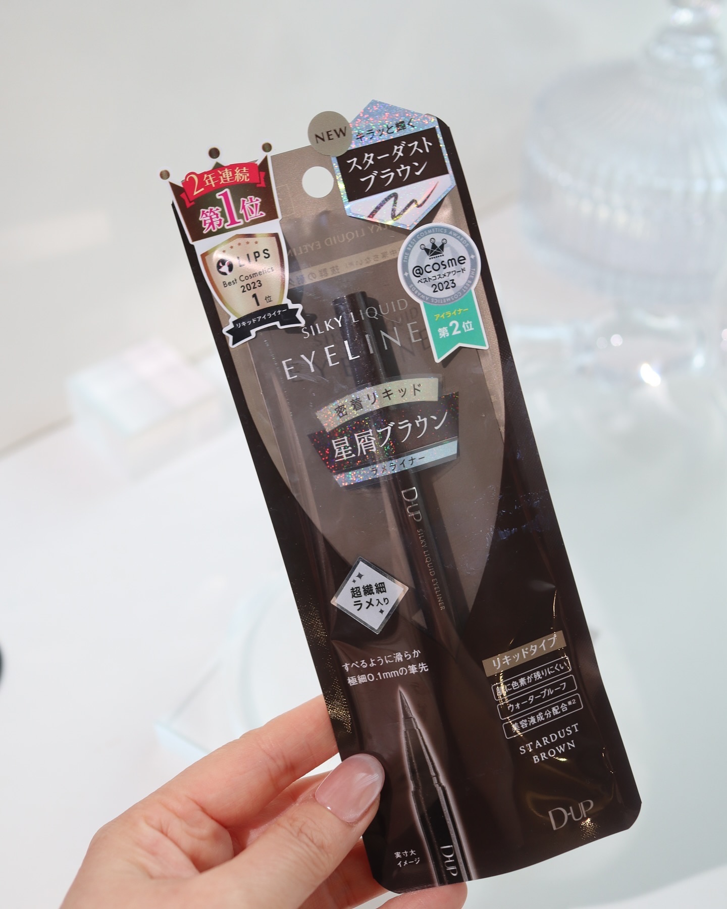 12.11🆕キラッと輝くラメライナー#星屑ブラウン💫ディーアップシルキーリキッドアイライナーから、『スターダストブラウン』が登場!🤩どんなメイクにも合う透け感のあるダークブラウンをベースに、シルバーや青の"多彩ラメ"を閉じ込めた、使いやすいラ...