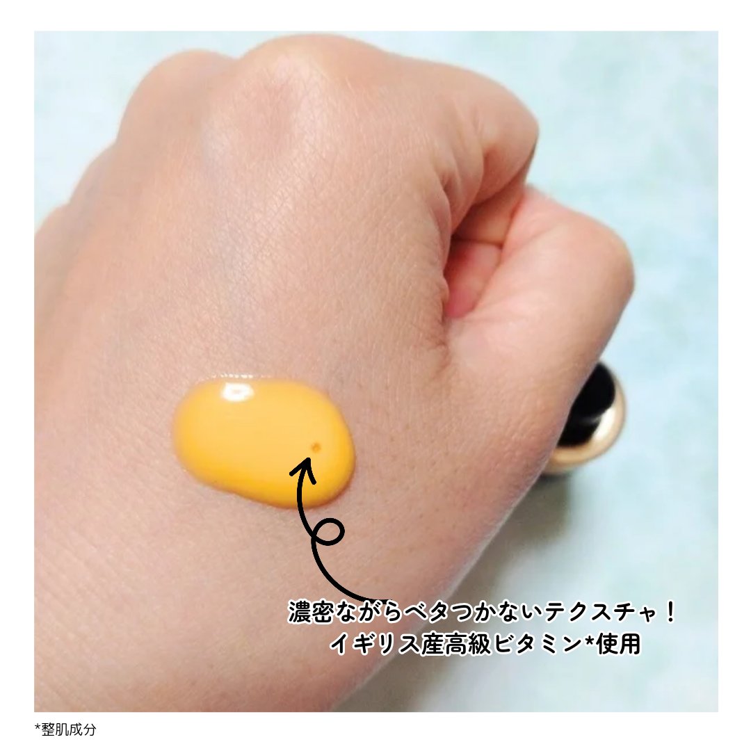- 高濃縮のピュアビタミンC*やグルタチオン*をたっぷり配合した美容液です。 べたつかないテクスチャーで肌を保湿し、ツヤのある美肌に導きます。 ☑ピュアビタミンC* 145,000ppm配合 ☑独自整肌成分MELA-FADE ☑ナチュラルビタコンプレックス:カムカムの実エキス*・ビタミンツリーウォーター*・カカドゥプラムエキス*配合 ☑ビタミンの鮮度を維持するため、茶色の瓶3本に小分けしたパッケージを採用 ☑肌の角質層により浸透されやすい、こだわりのpH濃度(pH4.0以下)に設定 ☑乾燥によるくすみケア/弾力ケア/保湿ケア/肌キメケア 化粧水などでお肌を整えたあと、適量を取り、お肌のキメに沿ってまんべんなく塗った後、やさしくなじませます。 * 保湿成分 ■お肌に異常が生じていないかよく注意してご使用ください。化粧品がお肌に合わないとき即ち次のような場合には、使用を中止してください。そのまま使 用を続けますと、症状を悪化させることがありますので、皮膚科専門医等にご相談されることをおすすめします。また、傷やはれもの、しっしん等の異常が ある部位には、ご使用にならないでください。 (1)使用中、赤み、はれ、かゆみ、刺激、色抜け(白斑等)や黒ずみ等の異常があらわれた場合 (2)使用したお肌に、直射日光があたって上記のような異常があらわれた場合 ■目に入らないようご注意ください。目に入ったときは、こすらずにすぐに洗い流してください。その後、目に異常が残る場合は、眼科専門医へご相談され ることをおすすめします。 ■極端に高温又は低温の場所、低湿、高湿の場所、直射日光のあたる場所には保管しないでください。 ■衣類につくと、しみになることがございますのでご注意ください。 ■乳児、子供の手の届かない所に保管してください。