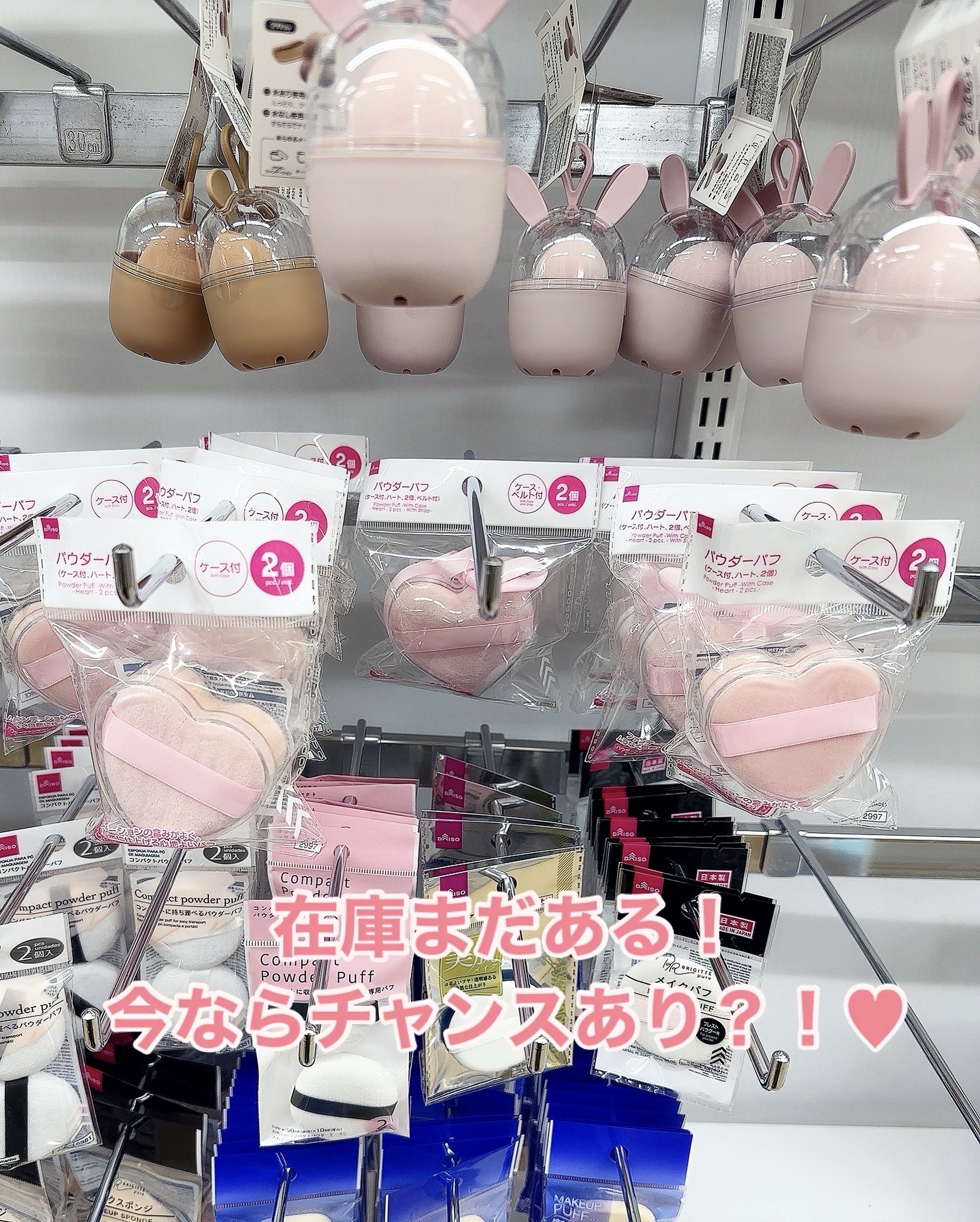 こんなに可愛いのに100円!?DAISOパウダーパフケース付、ハート、2個、ベルト付レビューパウダーを塗るパフを探していた所、激可愛いケース付、ハート、2個、ベルト付のDAISOのパウダーパフを見つけたので購入しました!2個入りなのにケースま...