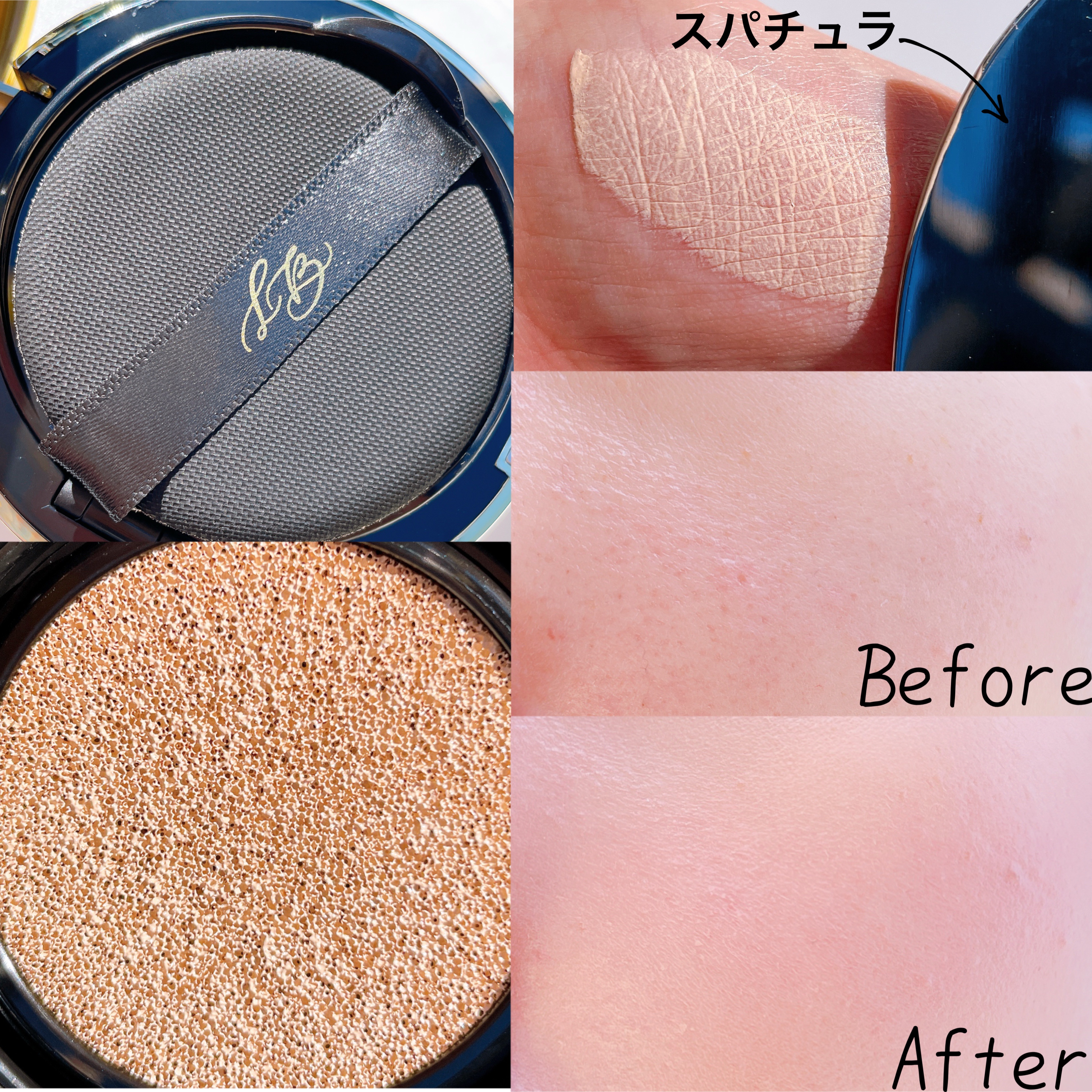 - 超密着フィッティングフォーミュラの無欠点クッションとして掲げている、「30時間クッション」という別称で、シミをカバーし、長時間使用しても肌がくすみにくく、30時間きれいな肌を演出してくれます。 また、完璧なカバー力と肌のキメを整えることができ、上品なツヤ感を表現することも可能です。 密着力に優れており、ご使用いただいた方からは「本来の肌がもともと綺麗なように見せてくれる」「どの角度からでもなめらかな肌を演出してくれシルク肌になれる」という感想を多くいただきました。 【使用方法】 1.パフに適量を取り、肌を静かに叩くようにして密着させます。 2.カバーが必要な箇所にはもう一度行います。 使用後、必ずカバーを閉じてください。カバーを開けたままにしておくと、成分などが蒸発し、内容物が収縮する場合があります。