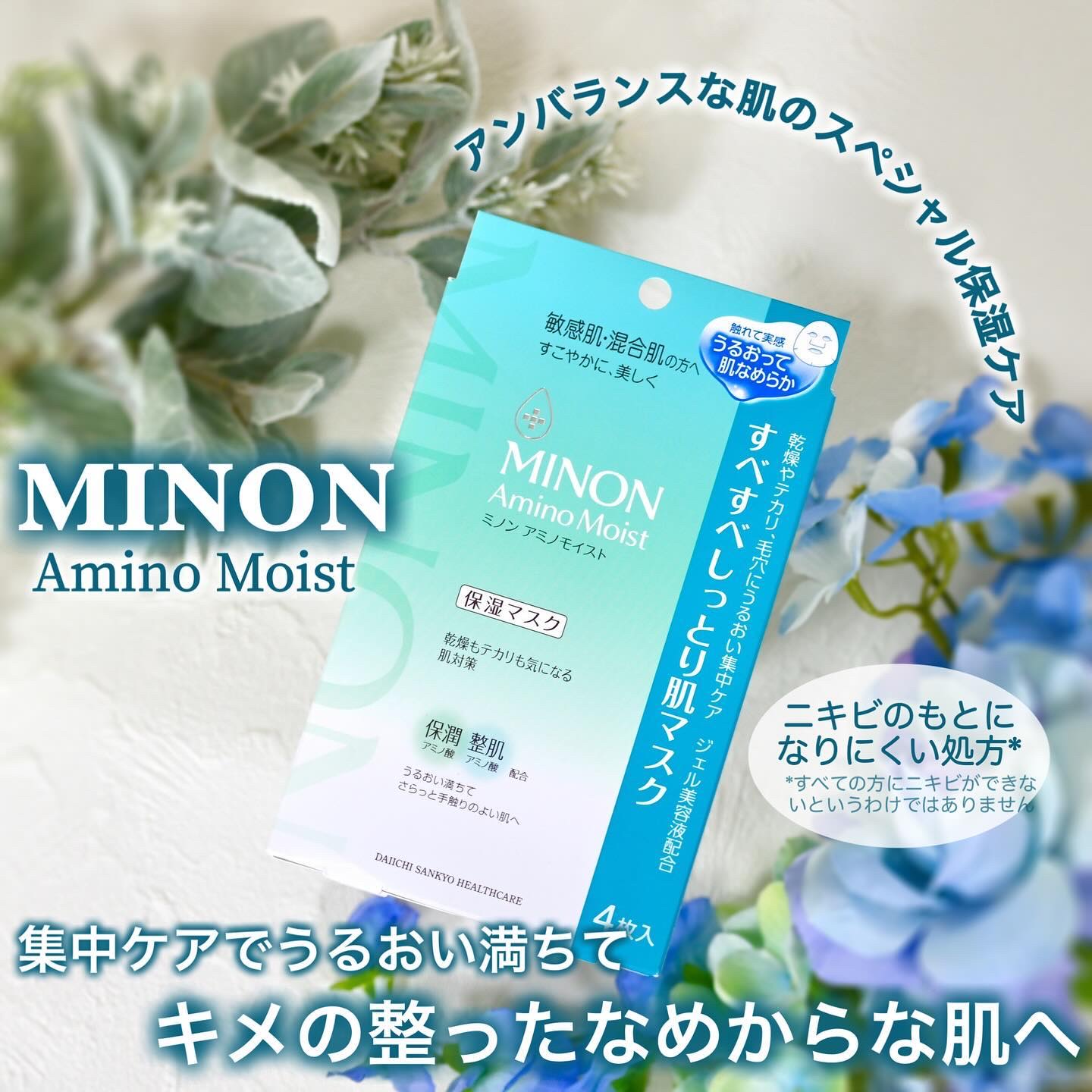 - <ミノン アミノモイスト すべすべしっとり肌マスク> 水、BG、グリセリン、ヒアルロン酸Na、フェノキシエタノール、トコフェロール、グリチルリチン酸2K、アスパラギン酸、アルギニン、グリシン、セリン、アラニン、プロリン、バリン、トレオニン、ヒスチジン、ソメイヨシノ葉エキス、プロパンジオール、DPG、水添レシチン、水酸化Na、ベタイン、PCA-Na、ポリクオタニウム-61、カプリル酸グリセリル、ペンテト酸5Na、1,2-ヘキサンジオール、アーチチョーク葉エキス、ロイシン、ポリメタクリル酸メチル、ラウリン酸ポリグリセリル-10、キウイエキス、(PCA/イソステアリン酸)PEG-40水添ヒマシ油、トリイソステアリン、アミノカプロン酸、エチルへキシルグリセリン、ラウロイルグルタミン酸ジ (フィトステリル/オクチルドデシル)、イソペンチ ルジオール、(アクリレーツ/ア クリル酸アルキル(C10-30))クロスポリマー