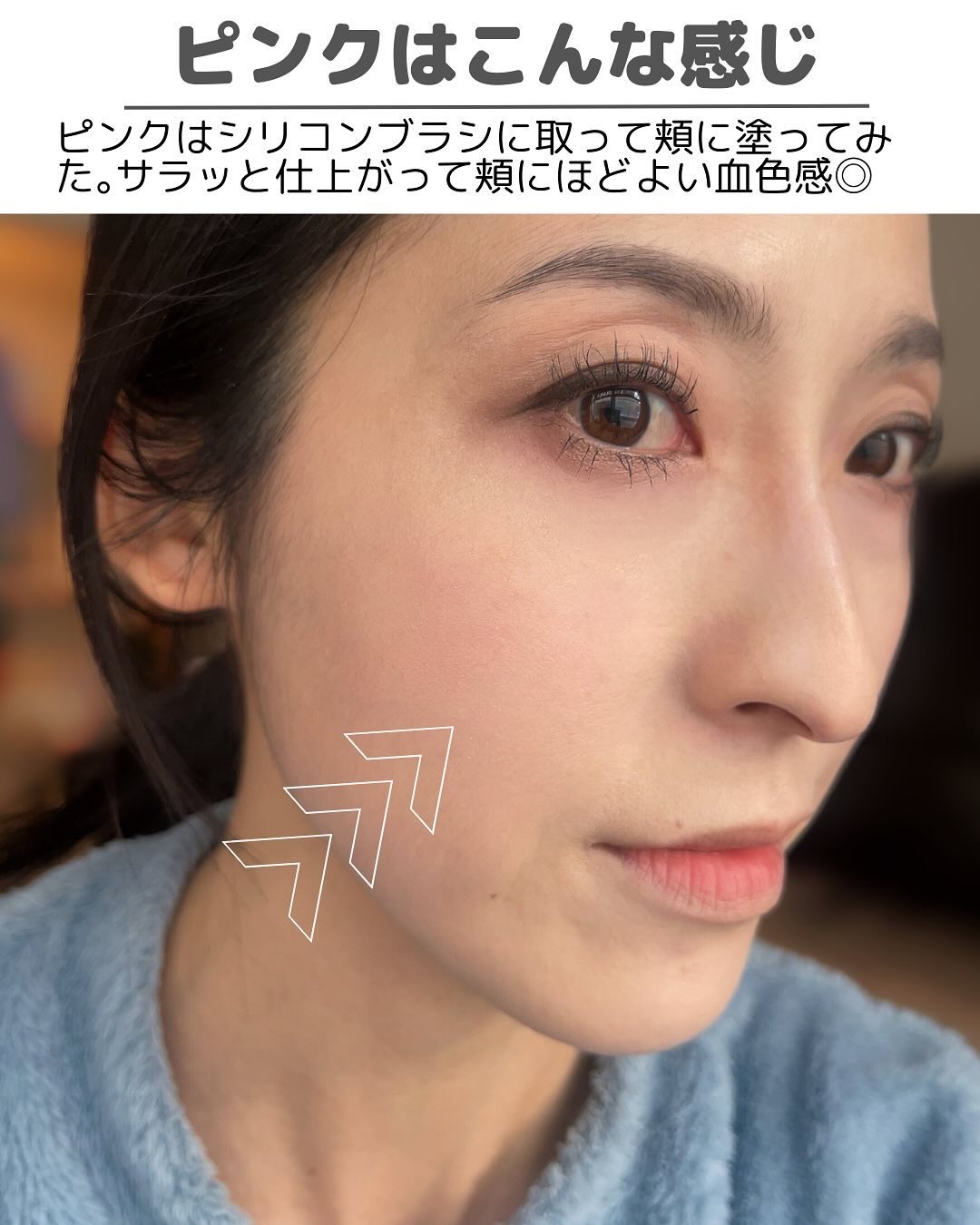 KATEの新作アイシャドウは質感の差で立体感を出すアイシャドウなんだって! モーヴカラーが気になってたんだけど、店頭に行ったらロージーポップが可愛く見えちゃってこの子をお持ち帰りしてきた💘 クリアグリッターはサイズ感の違うグリッターがかわいい🫶 マットのみでも可愛いんだけど、グリッターを乗せることで一気に丸みのあるお目目に! ロージーポップは右上マットの赤みのあるカラーが意外にも濃いめの印象。