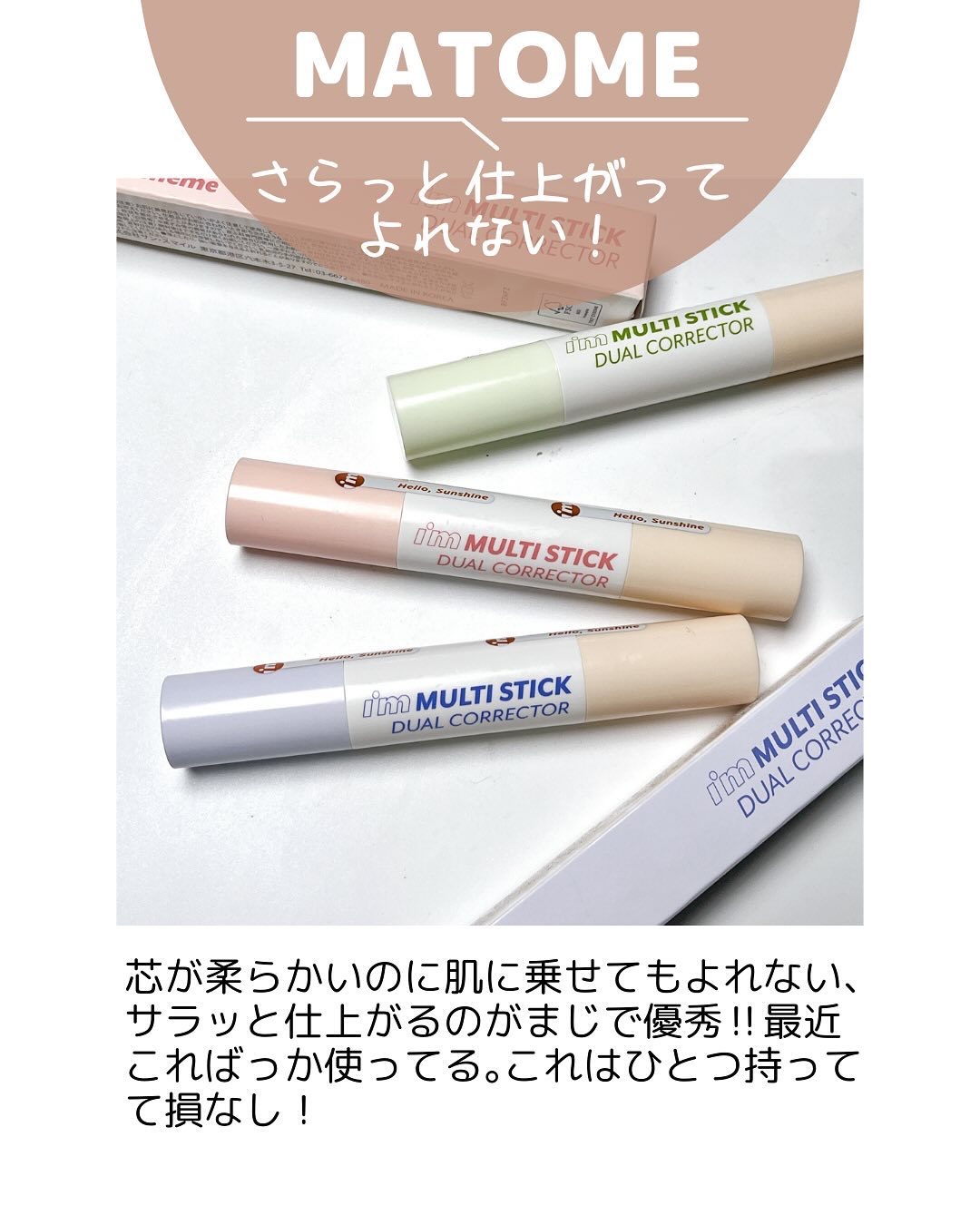 片方はコレクター、もう片方はコンシーラーとして使えるスティックタイプのコスメ。 全体的に顔を明るくできて、テクスチャーも柔らかめでするっと伸びもよくて、使いやすかった。 肌なじみもよくて、よれにくくてよかったです。
