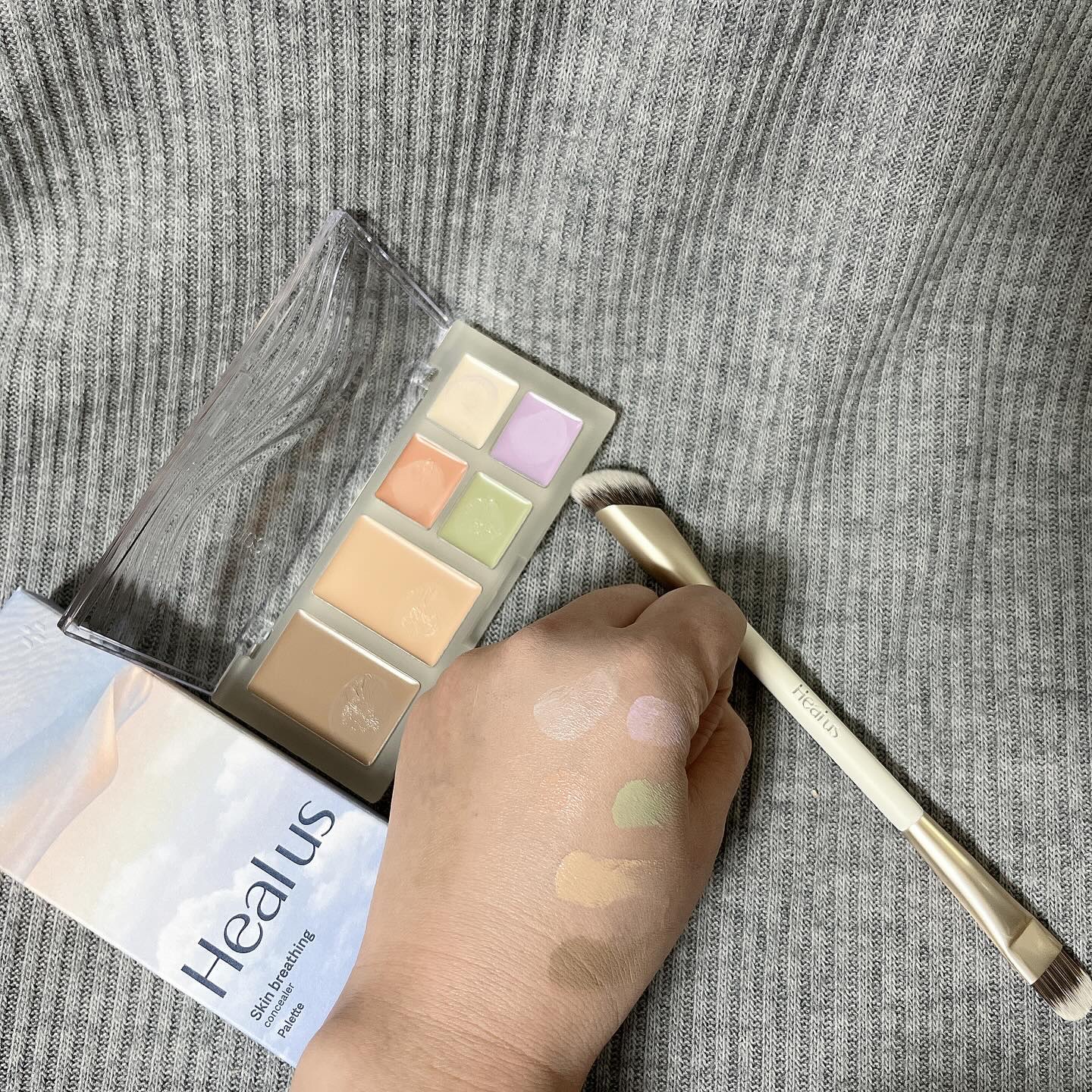 スキンプリージングテクスチャーで軽くて肌に負担のない、6色のカラーが入った、コンシーラーパレット。 軽やかでベタベタせず、すごく肌馴染みが良い⭕️ コンシーラーって、なんか肌から浮いちゃうのが苦手だったけど、さすがのHealus✨ ホーリーバジルなど、肌に優しい成分を使っているので肌への負担が少ないのも嬉しい💕