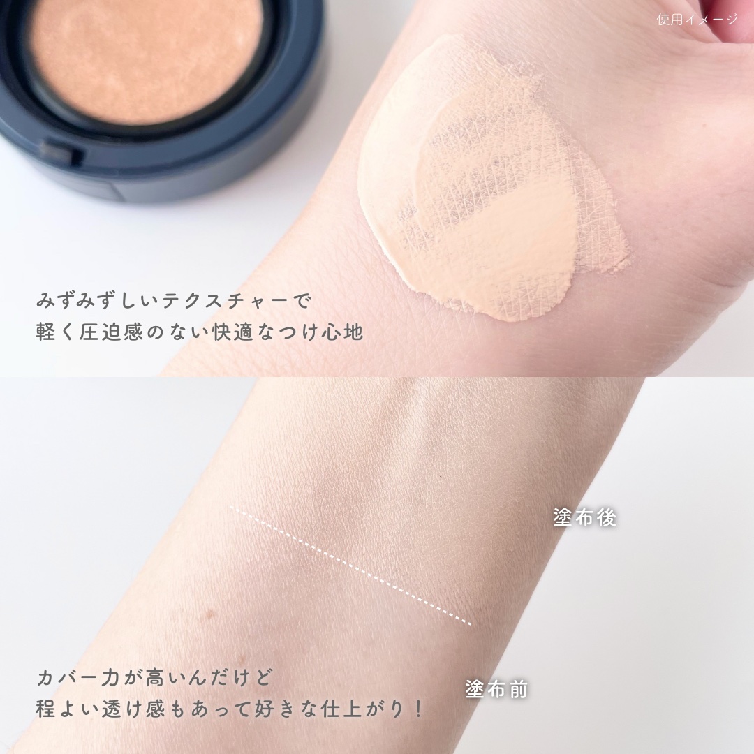 リアルデニムのパケが唯一無二で可愛いクッションファンデ! 水分たっぷりのウォータリーテクスチャーが、ほのかなツヤを演出してくれます。 薄づきで密着感も良く、しっとりとした使い心地。