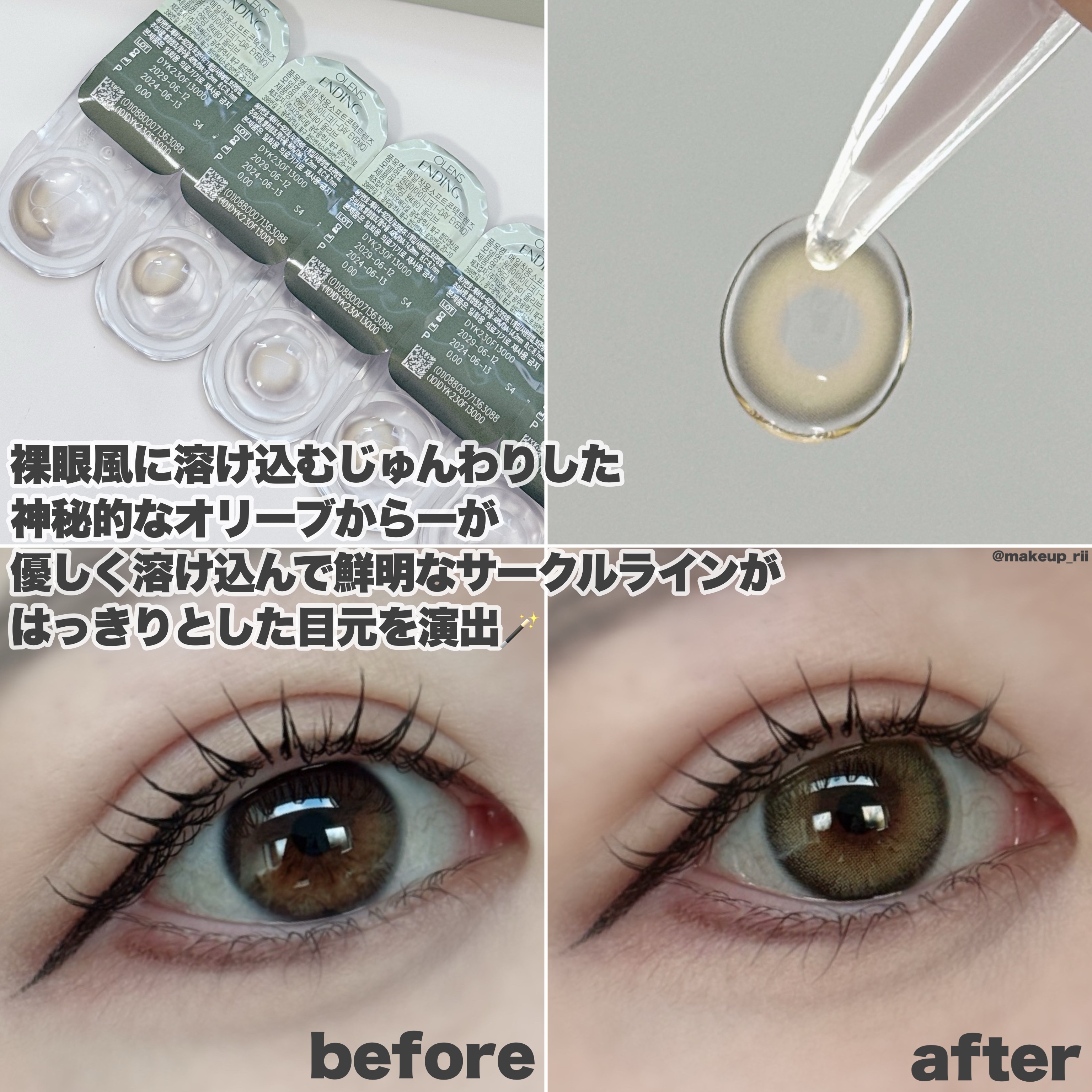 このオリーブはコスプレ感もなく使えて、浮かずに馴染むから可愛いよーー🍀 やっぱりGlowyが1番すき。 裸眼風に溶け込み神秘的な印象しっかりオリーブ感だしたいならこれ。