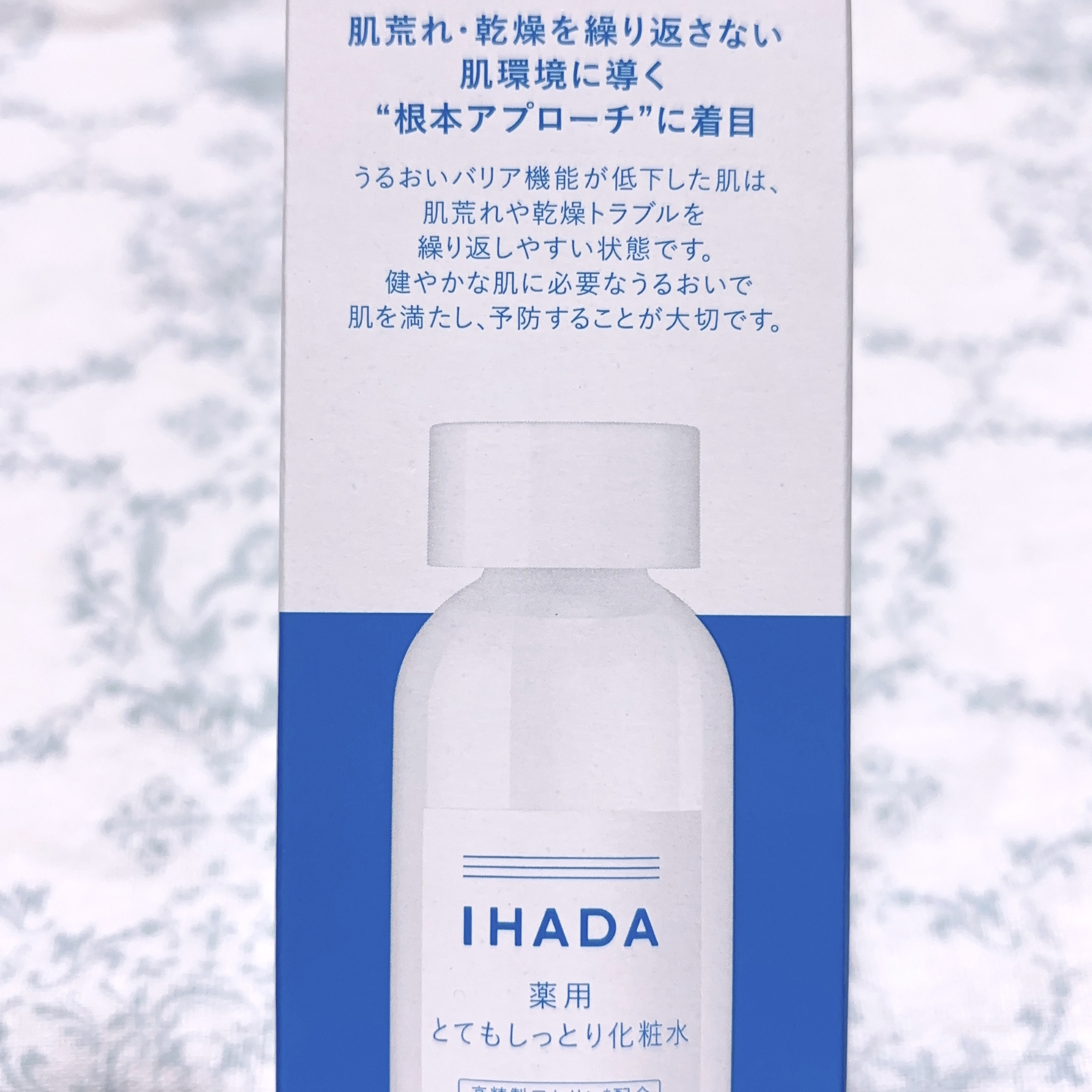 - 新パッケージへリニューアル。 不純物の少ない「高精製ワセリン」配合。 繰り返す肌荒れ、乾燥を防ぐとともに、肌のうるおいバリア機能を守り、濃密なうるおいで満たされた素肌に導く敏感肌設計の薬用化粧水です。 ○厳選原料・成分配合 ○パラベン(防腐剤)無添加、アルコール(エチルアルコール)無添加 ○無香料、無着色、弱酸性 〇アレルギーテスト済み・ニキビのもとになりにくい処方(全てのかたにアレルギーが起きない、また、ニキビができないわけではありません。) ※商品の改良や表示方法の変更などにより、実際の成分と一部異なる場合があります。実際の成分は商品の表示をご覧ください。 ※2026年2月21日(土)〜商品名・パッケージ・一部成分 順次リニューアル。 リニューアルに伴い商品名を「薬用ローション(とてもしっとり)」から「イハダ 薬用うるおいローション(とてもしっとり)」へ変更