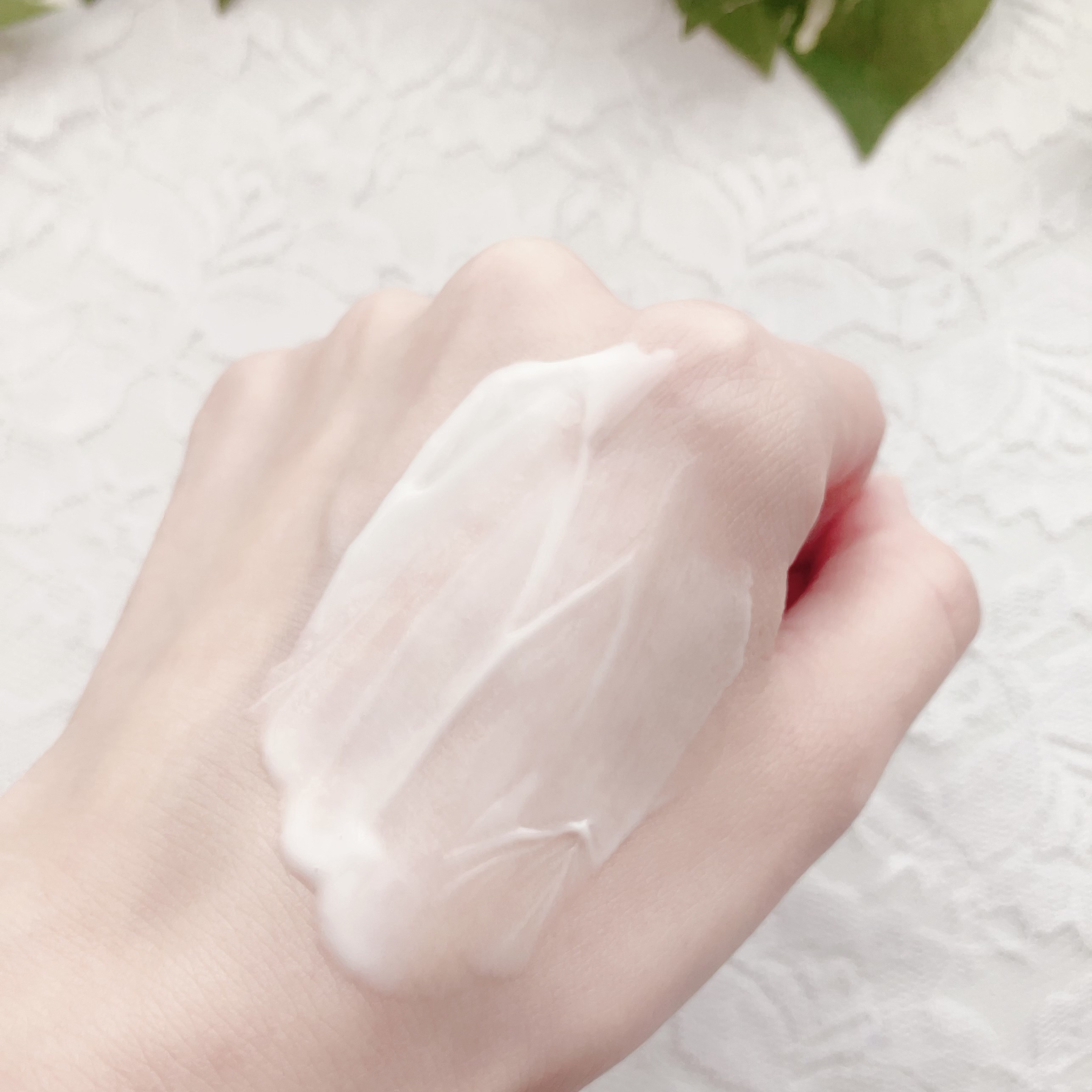さらさらで伸びが良いテクスチャー。 肌への密着感もあって、ピンクベージュの色みが毛穴のカバーとほんんのりトーンアップも。 クリームのようなテクスチャー。 肌にのせすぎると白っぽくなるので、少しずつ伸ばすのが◎ なめらかテクスチャー。 細かいパールが入ってますが、ギラギラしたりもなく自然な感じ。