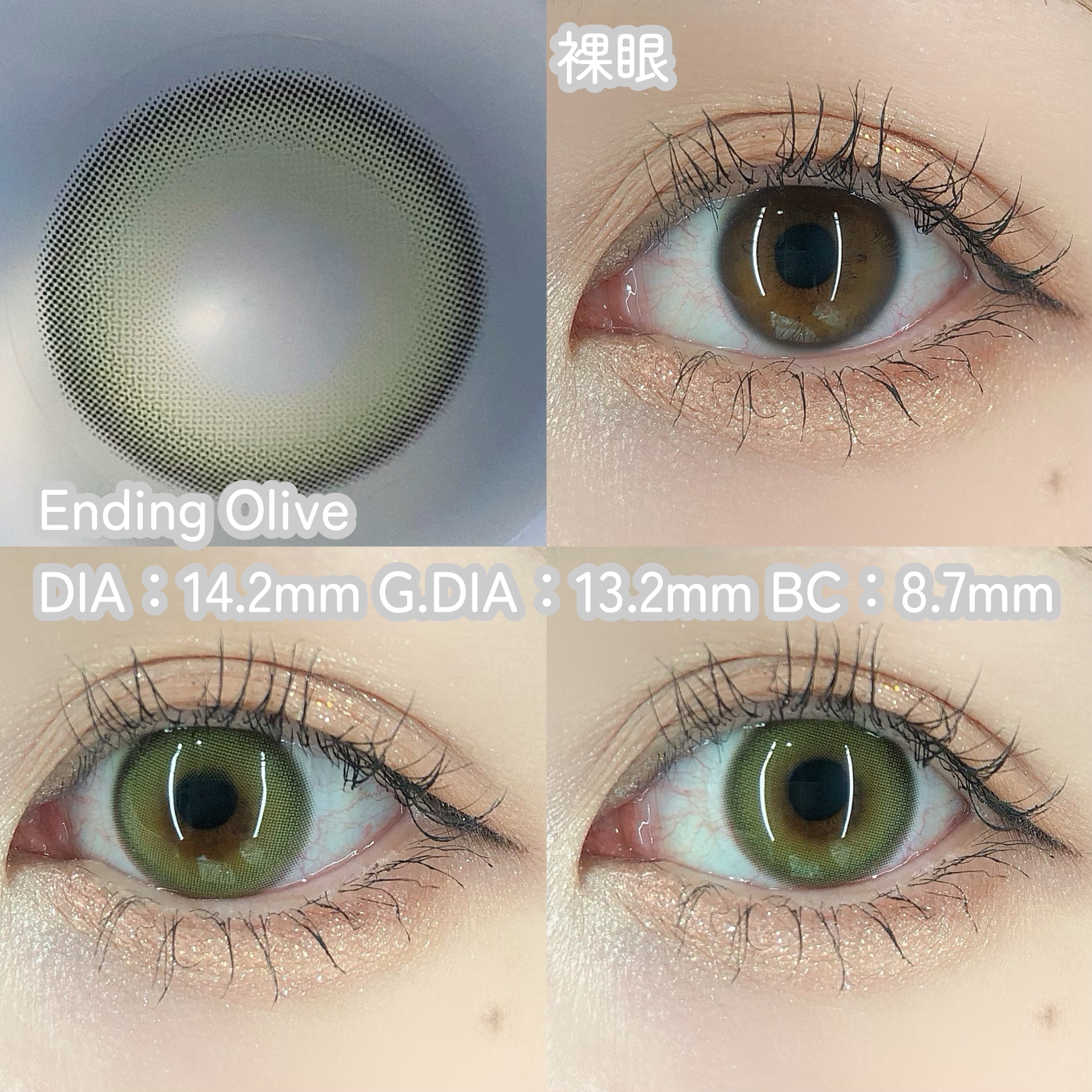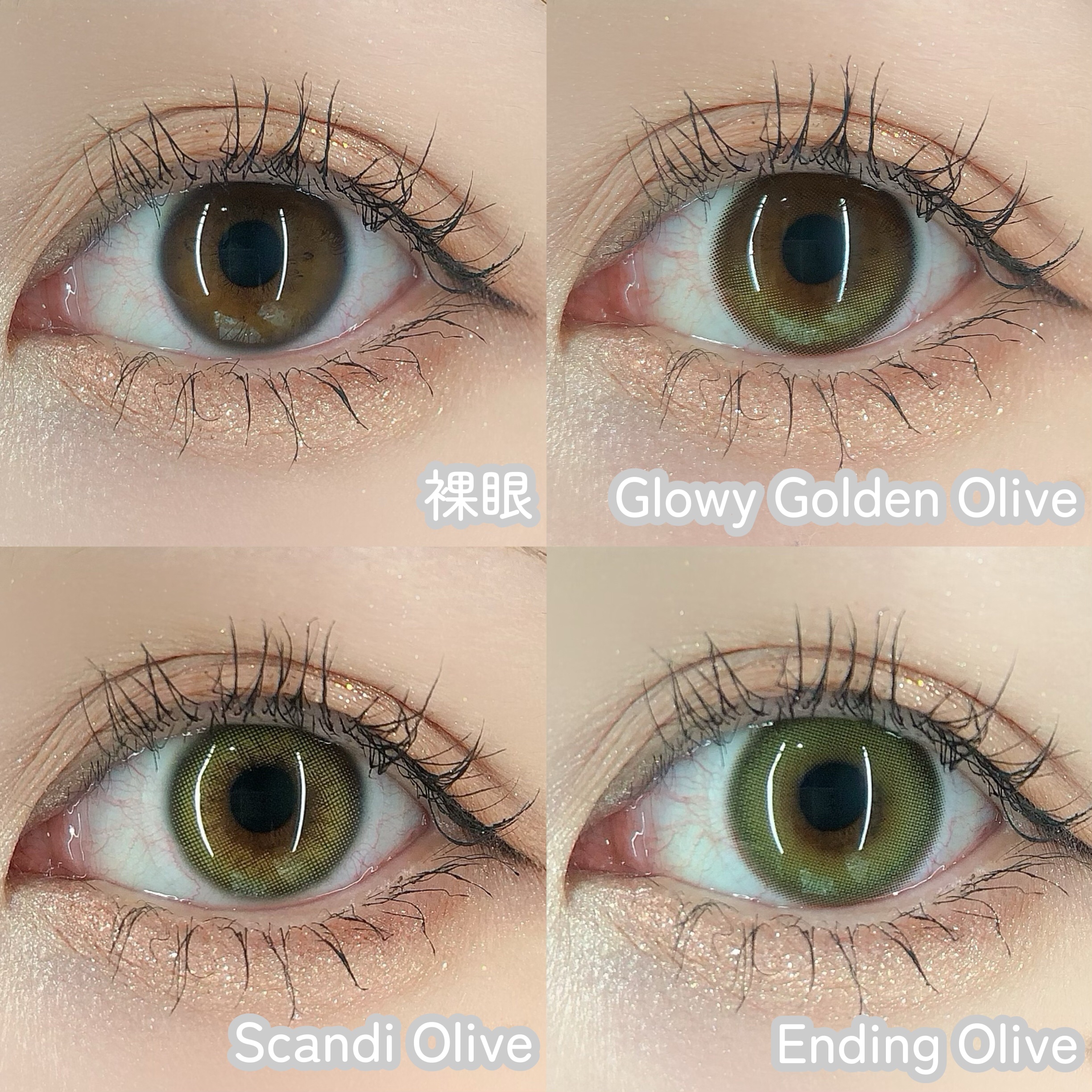 このオリーブはコスプレ感もなく使えて、浮かずに馴染むから可愛いよーー🍀 やっぱりGlowyが1番すき。 裸眼風に溶け込み神秘的な印象しっかりオリーブ感だしたいならこれ。