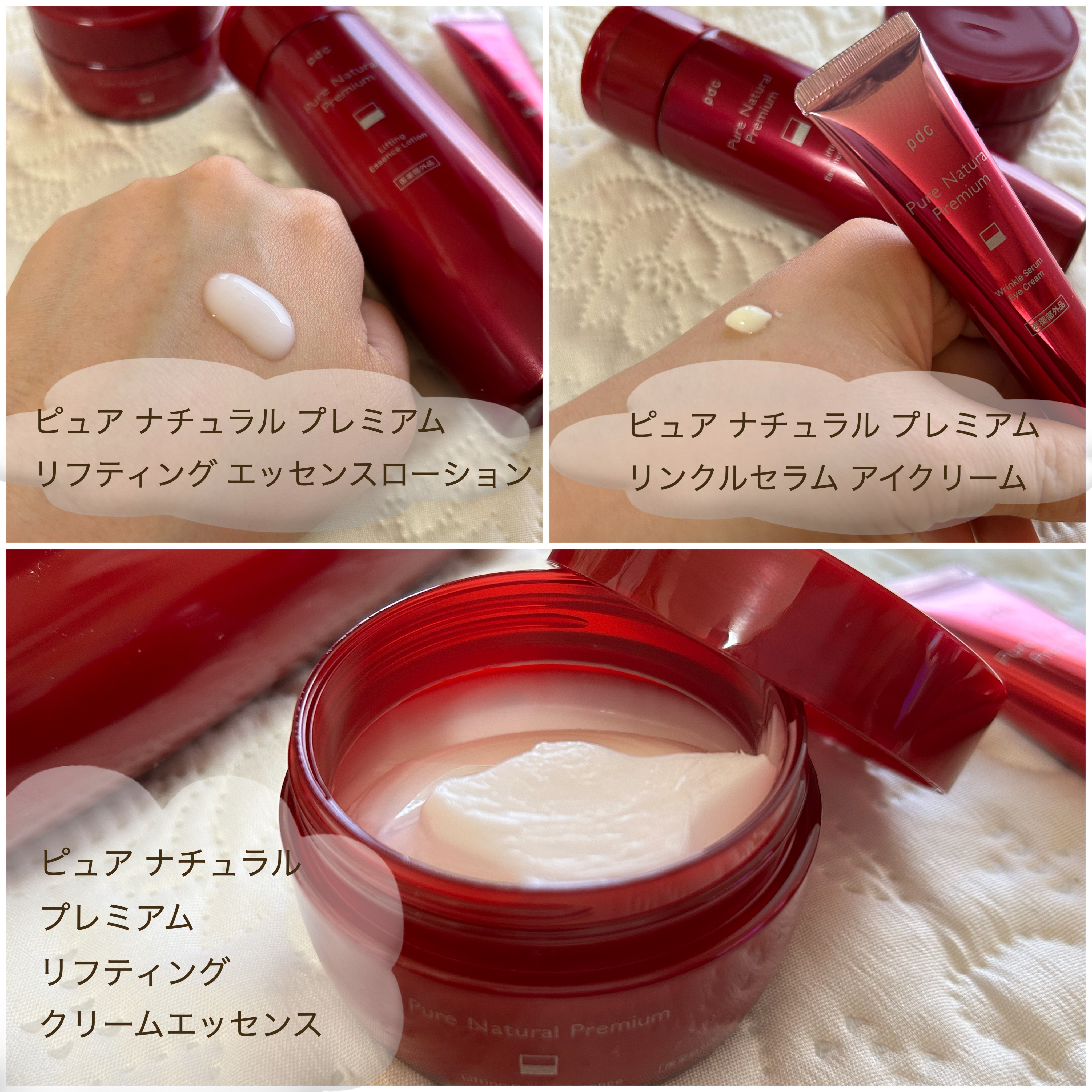 リフティング エッセンスローション「化粧水」と「乳液」がこれ1本🫧 素肌の水分と油分のバランスに着目し、うるおいを浸透させ、補給したうるおいを逃しません! リフティング クリームエッセンス「美容液」と「クリーム」がこれ1つ⸜︎💡⸝ 「保水美容液+保護クリーム」処方のクリームは、こっくり濃厚なテクスチャ❤️ リンクルセラム アイクリーム「目元美容液」と「アイクリーム」がこれ1本👀❤️ 保湿成分のレスベラトロールに加えて、厳選したふっくらサポート成分配合✨