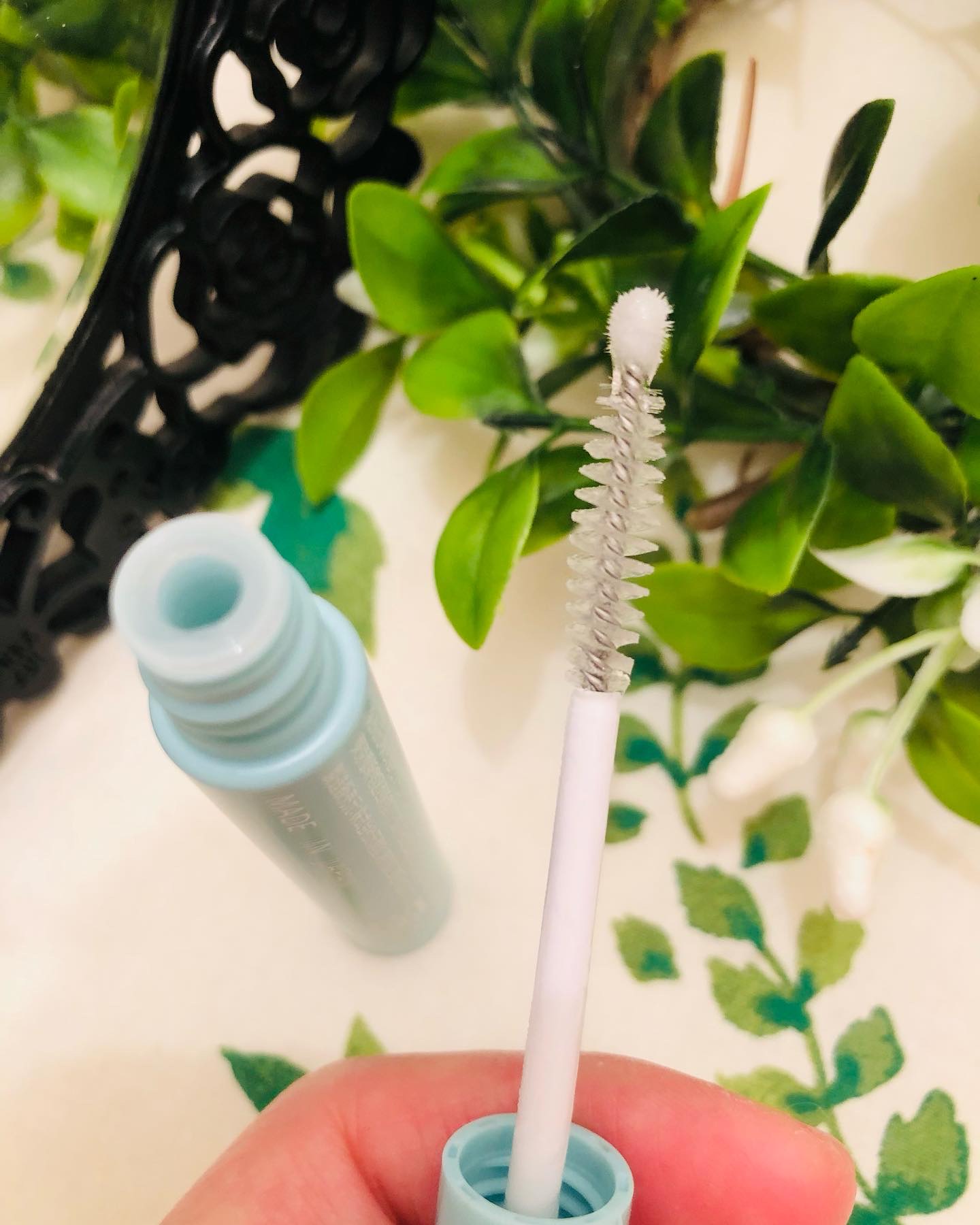 爽やかなブルーで、コンパクトなパッケージですね。蓋の部分をとりだすとチップとスクリューブラシが一緒になったような形で、テクスチャーがついています。 毛髪診断士と共に開発されたまつ毛ケアに適した美容成分を厳選して配合。デリケートなまつ毛に嬉しい8種のフリー処方で、まつ毛ケア だまになりにくいのと、たれにくくて、こまかなブラシで、まつ毛をキャッチしやすいところが気に入っています。