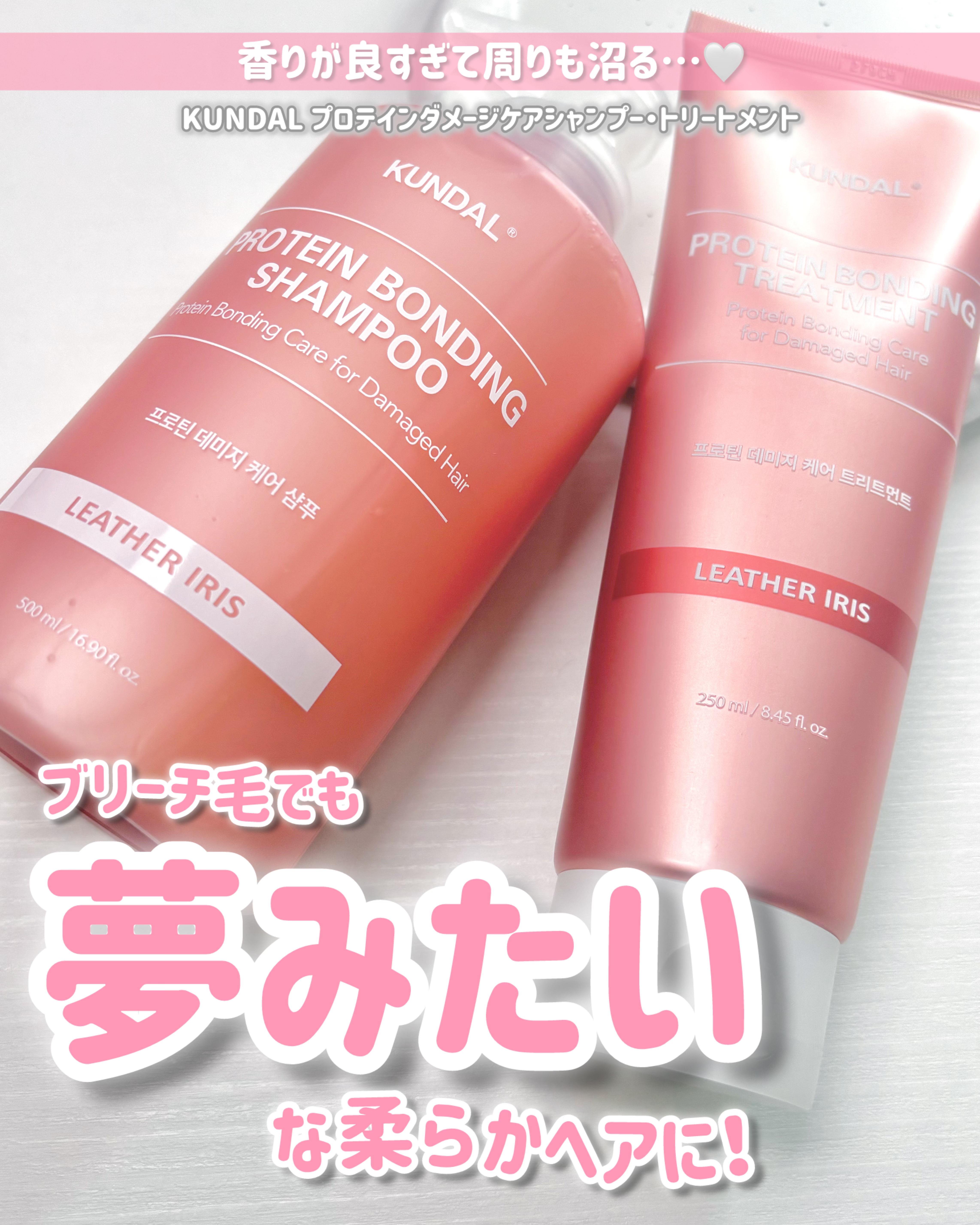 ダメージヘアが気になる方必見のKUNDALプロテインシリーズ✨ タンパク質結合力を高めて水分を補給しツヤのあるなめらかな髪に仕上げてくれるシャンプー✨ 高級感のある香水のような良い香りです☺️ 香りはそんなに強すぎなくてちょうど良い感じ!🙆♀️