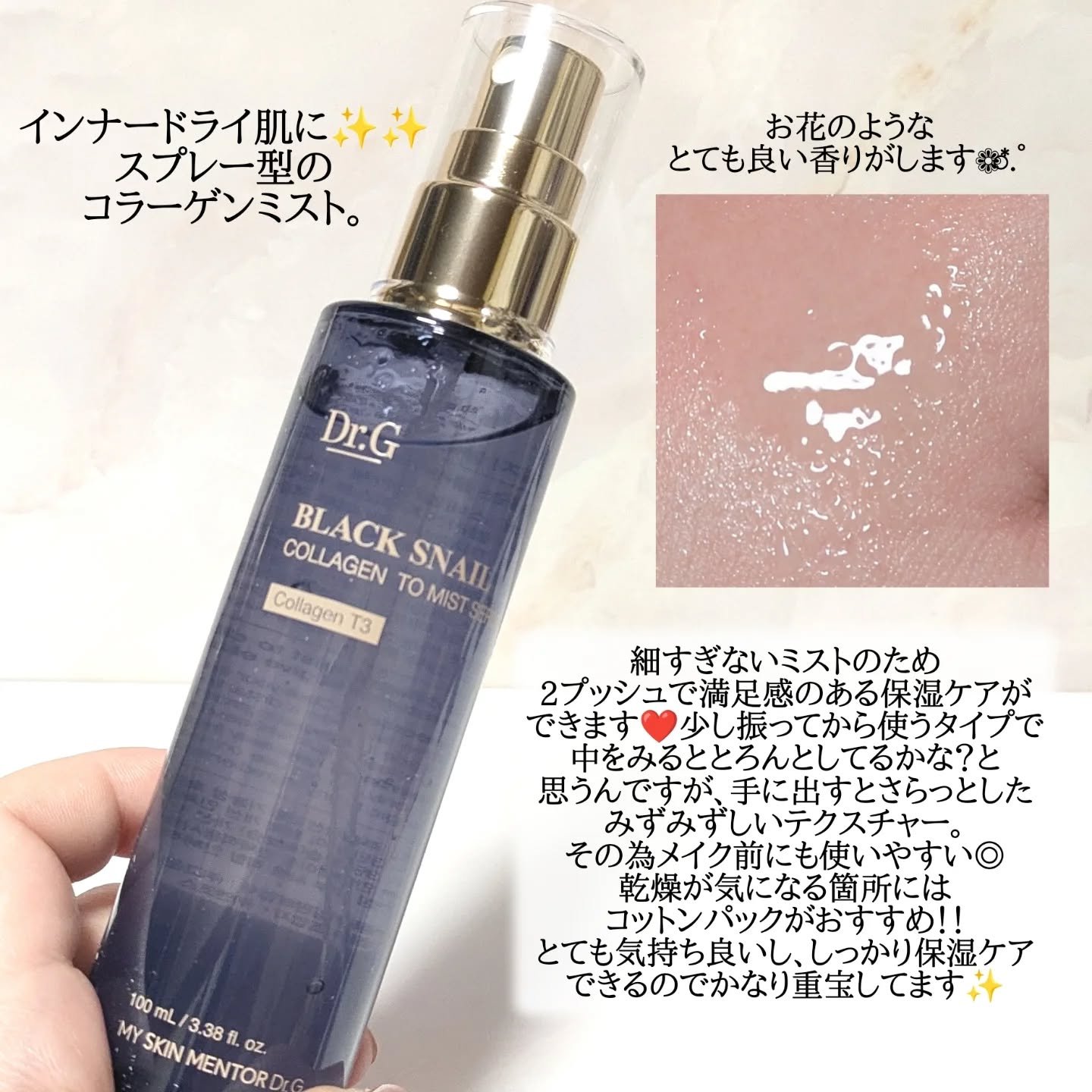 ミストセラムだからいい! ドクタージーのブラックスネイル コラーゲントゥミストセラム🕊️ 肌に栄養を与えてくれる ブラックスネイル、ドクタージー独自のT3コラーゲン、コラーゲン生成を促進するドクタージー独自のアクティブムチン配合。 潤い実感の贅沢なミストです。