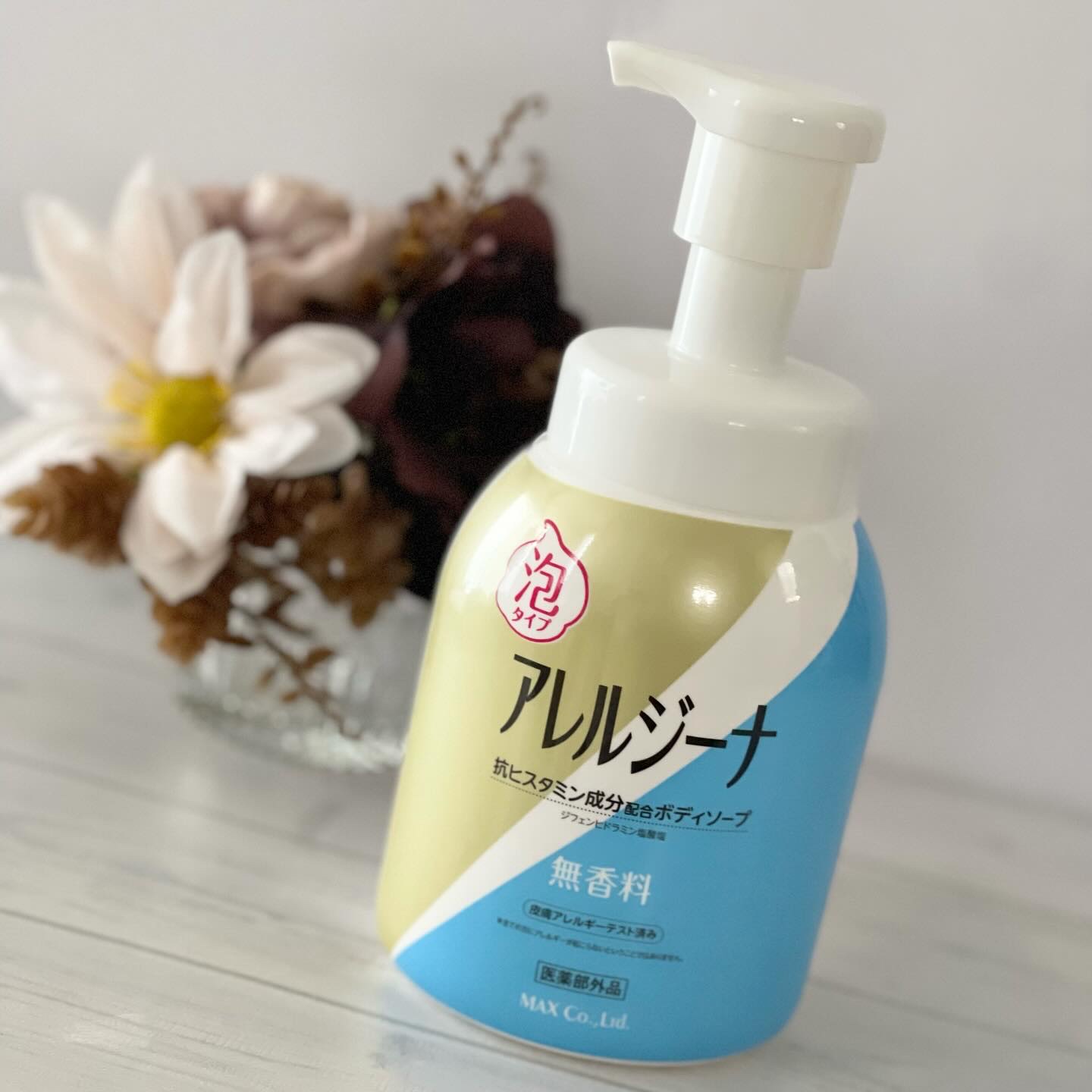 抗ヒスタミン成分※配合のボディーソープなんです 泡タイプだから肌を擦ることなく洗えるのもとっても助かる🥹 泡がへたりにくくて、なめらかでキメが細かいから肌当たりが良くてすごく洗いやすい