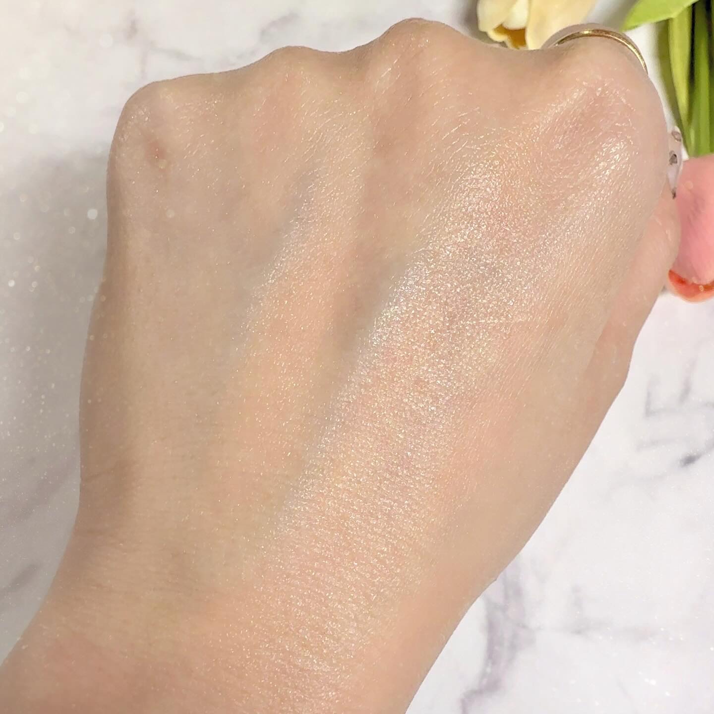 \かわいすぎて事件🤯💘⚡️濡れツヤハイライト/ 上品でキラキラのツヤが美しすぎると発売前から話題でしたね🙌 エナメル+キルティング加工のケースはツルツルぷにぷに♬ 薄型なので持ち運びにも便利!かわいいので無駄に持ち歩こう🙋♀️(?) 細かなピンクパールが温かみのあるツヤを演出してくれます💗 とてもしっとりしたパウダーで粉感がなく、繊細な輝きが長続きします👏 大粒の偏光ラメがギラギラ🤩🥳祭りじゃ〜!といった感じ笑 ホワイトカラーで輝きが目立つので濡れたようなツヤ感が出ます✨ マスクメイクでも頬骨より少し上のCゾーンに入れれば隠れずツヤ感が綺麗に映えます🥰 ラメが大粒で強いのでアイメイクの仕上げに入れても💮 結果万能なのとちょっと奇抜なの♥️ 両方文句なしにかわいかったので満足です🧚♀️笑