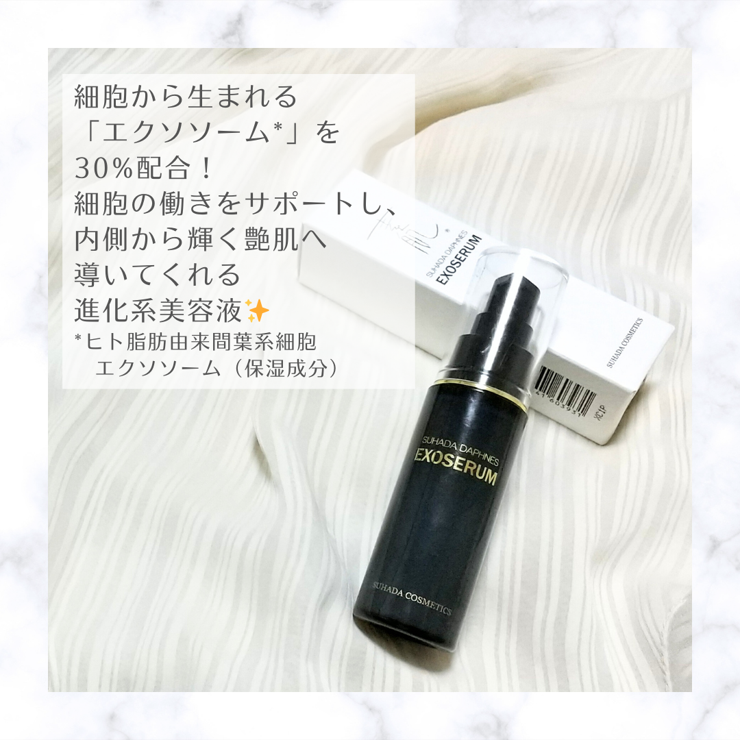 年齢肌に応じたスキンケアにオススメの美容液です🥰 “ナノサイズのカプセルに閉じ込めた”保湿成分のエクソソーム配合の美容液です🥰 トロッとしたテクスチャーで、お肌に馴染ませると、膜を張ったようにしっとり保湿されました🫰🏻💕