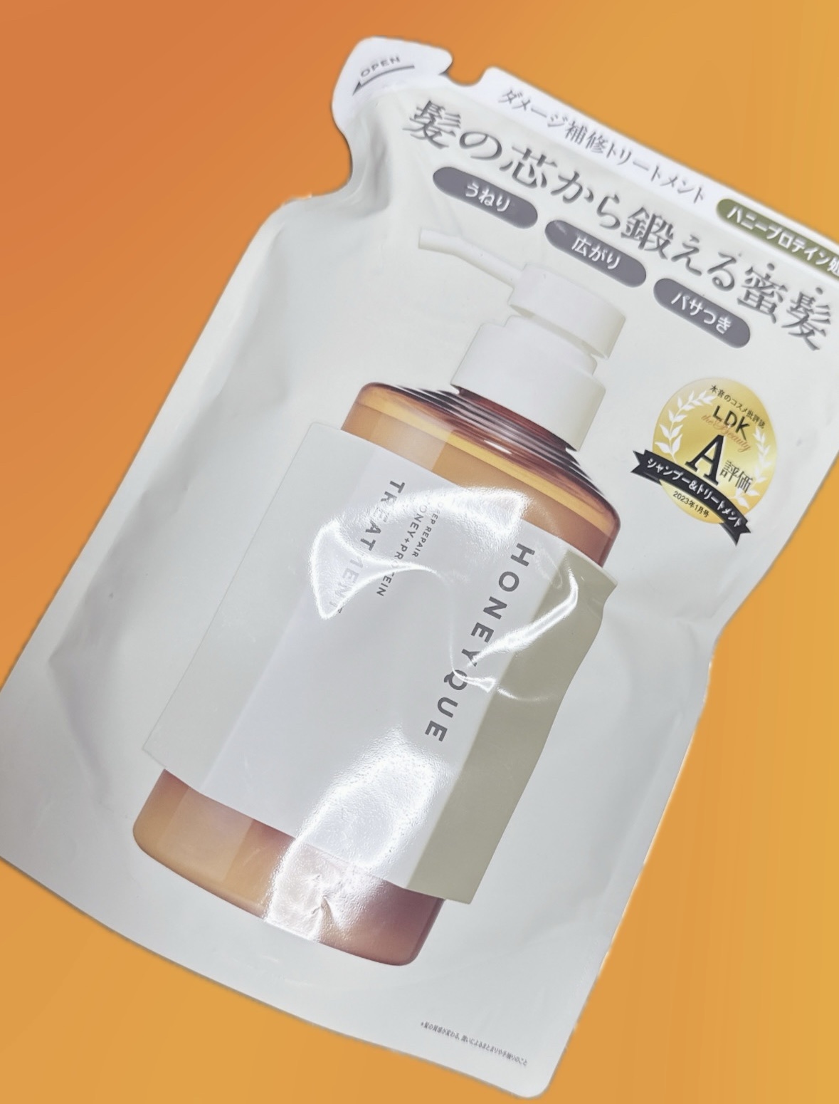 - <シャンプー本体 450ml> 水、ラウロイルメチルアラニンNa、ラウラミドプロピルベタイン、コカミドメチルMEA、グリセリン、ココイルメチルタウリンNa、ハチミツ、加水分解乳タンパク、加水分解ダイズタンパク、加水分解ローヤルゼリータンパク、アーモンド油、マンゴー種子脂、アンズ核油、ジラウラミドグルタミドリシンNa、シクロヘキサン-1,4-ジカルボン酸ビスエトキシジグリコール、加水分解ウールキューティクルタンパク、ステアルジモニウムヒドロキシプロピル加水分解ケラチン(羊毛)、イソステアロイル加水分解ケラチン(羊毛)、ココイル加水分解ケラチンK(羊毛)、(ジヒドロキシメチルシリルプロポキシ)ヒドロキシプロピル加水分解シルク、ヒアルロン酸ヒドロキシプロピルトリモニウム、カルボキシメチルヒアルロン酸Na、加水分解ゴマタンパクPGプロピルメチルシランジオール、ラウロイルグルタミン酸ジ(フィトステリル/オクチルドデシル)、ポリクオタニウム-47、ポリクオタニウム-10、イソノナン酸イソノニル、ステアラミドプロピルジメチルアミン、PPG-7、メトキシケイヒ酸エチルヘキシル、ジエチルアミノヒドロキシベンゾイル安息香酸ヘキシル、水酸化K、EDTA-2Na、グルコノラクトン、カラメル、メントール、ペンチレングリコール、BG、DPG、塩化Na、クエン酸、安息香酸Na、エタノール、フェノキシエタノール、香料 <トリートメント本体 450ml> 水、セテアリルアルコール、ジメチコン、ベヘントリモニウムクロリド、グリセリン、パルミチン酸エチルヘキシル、ハチミツ、加水分解乳タンパク(牛乳)、ダイズタンパク、加水分解ローヤルゼリータンパク、アーモンド油、アンズ核油、マンゴー種子脂、ジラウロイルグルタミン酸リシンNa、シクロヘキサン-1,4-ジカルボン酸ビスエトキシジグリコール、イソステアロイル加水分解ケラチン(羊毛)、ステアルジモニウムヒドロキシプロピル加水分解ケラチン(羊毛)、ヒアルロン酸ヒドロキシプロピルトリモニウム、カルボキシメチルヒアルロン酸Na、セラミドNG、セラミドNP、セラミドAP、ラウロイルグルタミン酸ジ(フィトステリル/オクチルドデシル)、ラウロイルグルタミン酸ジヘキシルデシル、γ-ドコサラクトン、クオタニウム-33(羊毛)、コレステロール(羊毛)、キトサンヒドロキシプロピルトリモニウムクロリド、シロキクラゲ多糖体、イソステアリルグリセリル、イソノナン酸イソノニル、ヒドロキシエチルセルロース、BG、PG、カラメル、ジステアリルジモニウムクロリド、セバシン酸ジエチル、ペンテト酸5Na、クエン酸、クエン酸Na、イソプロパノール、フェノキシエタノール、香料 <シャンプー詰替用 400ml> 水、ラウロイルメチルアラニンNa、ラウラミドプロピルベタイン、コカミドメチルMEA、グリセリン、ココイルメチルタウリンNa、ハチミツ、加水分解乳タンパク、加水分解ダイズタンパク、加水分解ローヤルゼリータンパク、アーモンド油、マンゴー種子脂、アンズ核油、ジラウラミドグルタミドリシンNa、シクロヘキサン-1,4-ジカルボン酸ビスエトキシジグリコール、加水分解ウールキューティクルタンパク、ステアルジモニウムヒドロキシプロピル加水分解ケラチン(羊毛)、イソステアロイル加水分解ケラチン(羊毛)、ココイル加水分解ケラチンK(羊毛)、(ジヒドロキシメチルシリルプロポキシ)ヒドロキシプロピル加水分解シルク、ヒアルロン酸ヒドロキシプロピルトリモニウム、カルボキシメチルヒアルロン酸Na、加水分解ゴマタンパクPGプロピルメチルシランジオール、ラウロイルグルタミン酸ジ(フィトステリル/オクチルドデシル)、ポリクオタニウム-47、ポリクオタニウム-10、イソノナン酸イソノニル、ステアラミドプロピルジメチルアミン、PPG-7、メトキシケイヒ酸エチルヘキシル、ジエチルアミノヒドロキシベンゾイル安息香酸ヘキシル、水酸化K、EDTA-2Na、グルコノラクトン、カラメル、メントール、ペンチレングリコール、BG、DPG、塩化Na、クエン酸、安息香酸Na、エタノール、フェノキシエタノール、香料 <トリートメント詰替用 400ml> 水、セテアリルアルコール、ジメチコン、ベヘントリモニウムクロリド、グリセリン、パルミチン酸エチルヘキシル、ハチミツ、加水分解乳タンパク(牛乳)、ダイズタンパク、加水分解ローヤルゼリータンパク、アーモンド油、アンズ核油、マンゴー種子脂、ジラウロイルグルタミン酸リシンNa、シクロヘキサン-1,4-ジカルボン酸ビスエトキシジグリコール、イソステアロイル加水分解ケラチン(羊毛)、ステアルジモニウムヒドロキシプロピル加水分解ケラチン(羊毛)、ヒアルロン酸ヒドロキシプロピルトリモニウム、カルボキシメチルヒアルロン酸Na、セラミドNG、セラミドNP、セラミドAP、ラウロイルグルタミン酸ジ(フィトステリル/オクチルドデシル)、ラウロイルグルタミン酸ジヘキシルデシル、γ-ドコサラクトン、クオタニウム-33(羊毛)、コレステロール(羊毛)、キトサンヒドロキシプロピルトリモニウムクロリド、シ