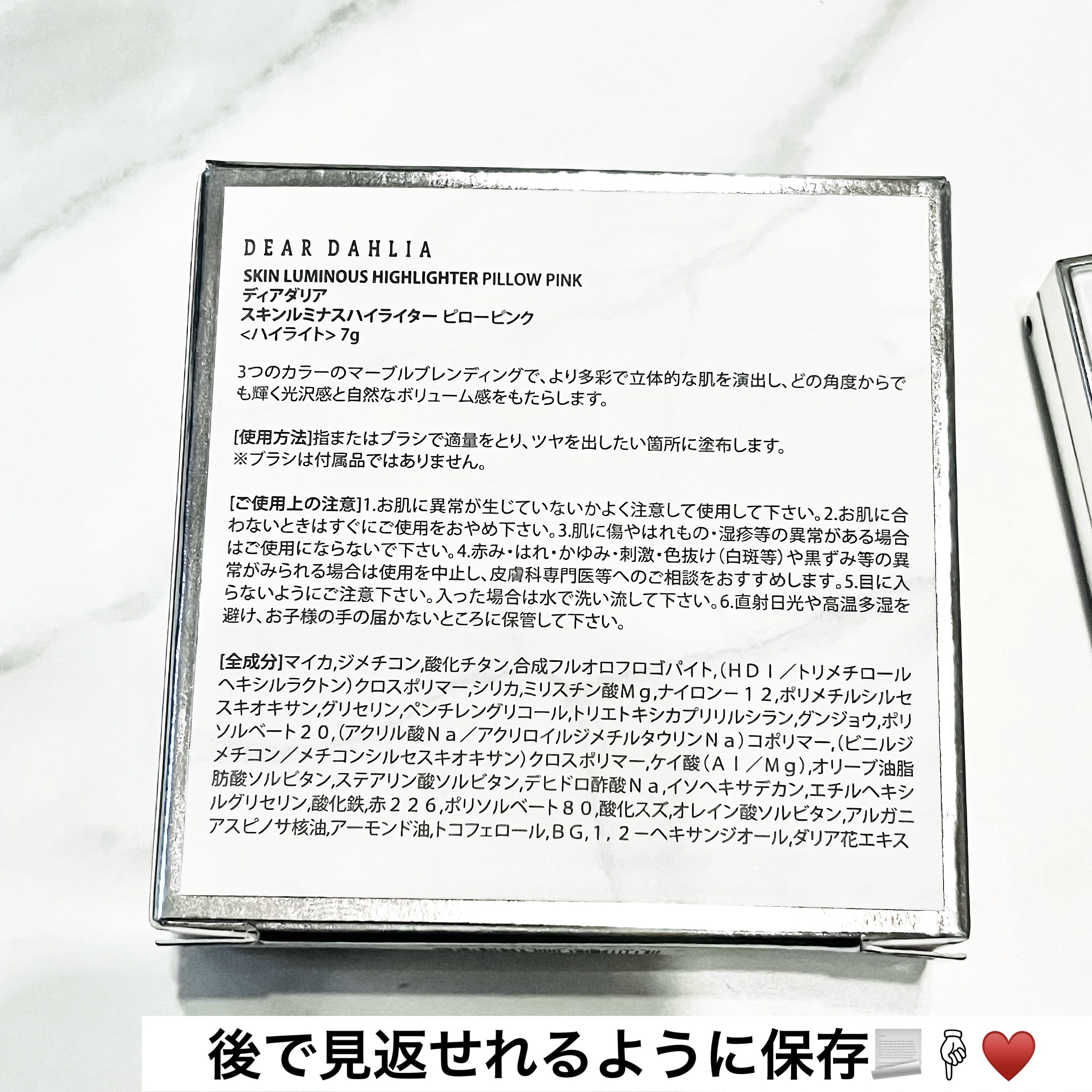 DEAR DAHLIAはダリアの花からインスピレーションを受けて誕生したラグジュアリーヴィーガンビューティーブランドだそうです✨✨ 保湿成分を含んだシーマリングパウダーが、乾燥なしで優秀な付け心地との事です。 コンパクトで大理石柄のパッケージが可愛い💕鏡付きなので持ち歩きにも便利です‼︎