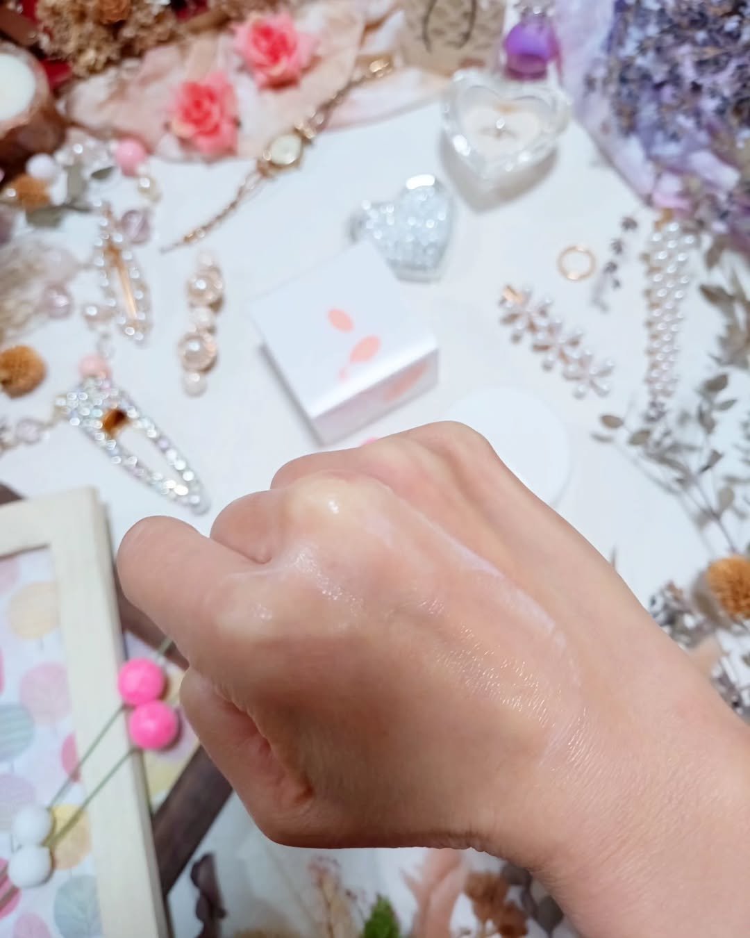 白地に少しピンク色の楕円がポイントとしてデザインしてあるジャー型容器に入った薬用クリーム。中は真っ白でツノがしっかりと立つほど濃厚なテクスチャー。 ベタつかないテクスチャーなのでお気に入りのひとつになりました♡♡ 濃厚なテクスチャーでお風呂上りに塗布すると翌朝までしっとり感が持続します。