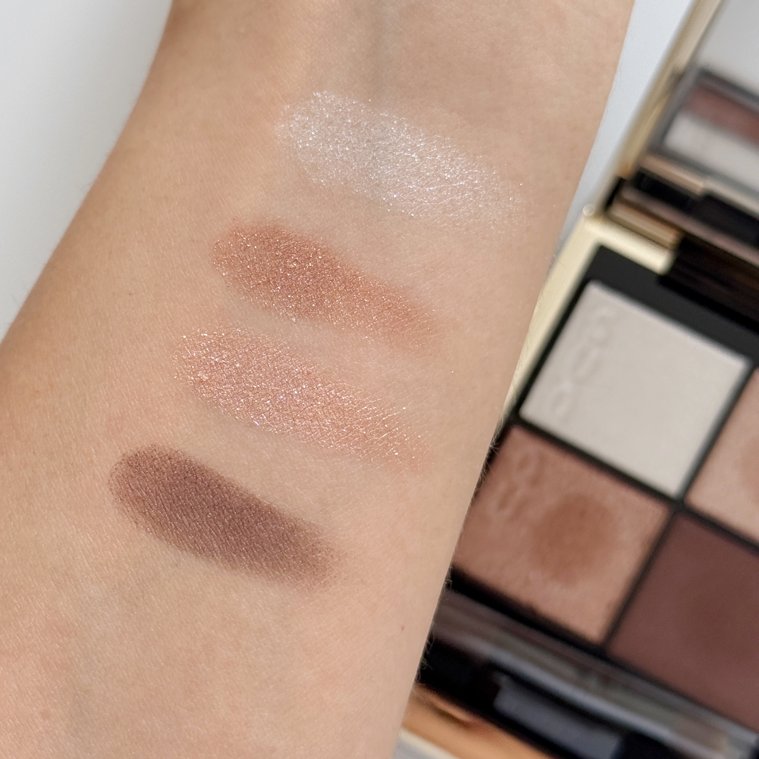 テクスチャーはクリームアイシャドウなので体温でジュワッと溶ける感じなのですが他社のクリームアイシャドウよりも柔らかめだなと感じました。 手で取ると少量でもすごく綺麗なラメ感が出るのでとにかくめちゃくちゃ可愛いです。 お肌に乗せた時の色と仕上がりにめちゃくちゃテンションが上がりました!ほんっっとに可愛いオレンジブラウン! 薄くのばして重ねてもあまりムラが気にならないのでパパッとメイクするときにも使えるしこれ単色でもすごく可愛い。 クリームアイシャドウの中ではまぶたの溝に溜まる量も少なめに感じました。もちろんほんのり溜まっちゃうんですがカラーのおかげもありあまり気にならないかな?という感じ。 カラーの可愛さに本当にびっくりしました。そしてクリームアイシャドウとしてもしっとり感と密着感のバランスが程よくてすごく使いやすく感じています。