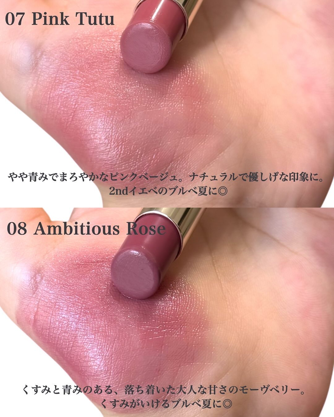 特に既にSNSでバズっていたものやバズりを確信したカラー6色をレビューしました🥺💓 輝きや高保湿のリップケア力、ボリュームアップというトリプル効果はそのままに、ヒアルロン酸とチェリー オイルが配合された自然由来の新処方に。 ヌードからモーヴ、ブリックからコーラル、そしてレッドトーンまで幅広い24色のカラーバリエーション。 そしてクラシック、インテンス、シマー、ホログラフィックという4つの質感! どれもめちゃくちゃ可愛くて全部揃えたくなっちゃう!誰でも得意なカラーが見つかるカラバリです◎ マスク生活が終わったらいち早く使いたいリップです💄