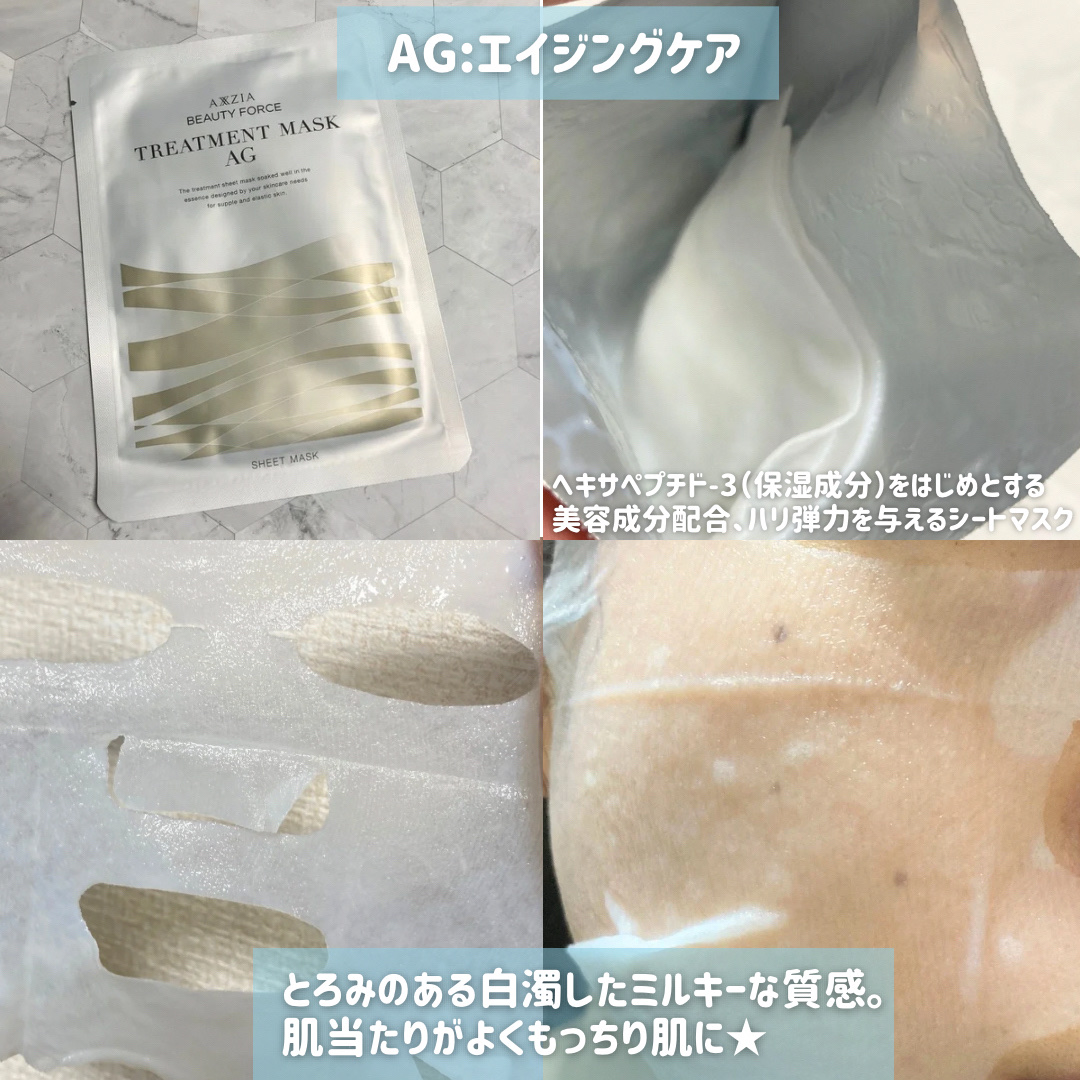 @axxzia_jp様よりプレゼント企画で頂きました。"ビューティーフォーストリートメントマスク"3種セット頂きました。それぞれ7枚入り。ラグジュアリーな雰囲気漂ようマスクです。 ◻︎AG(エイジングケア※タイプ) まるで肌へのご馳走! ヘキ...