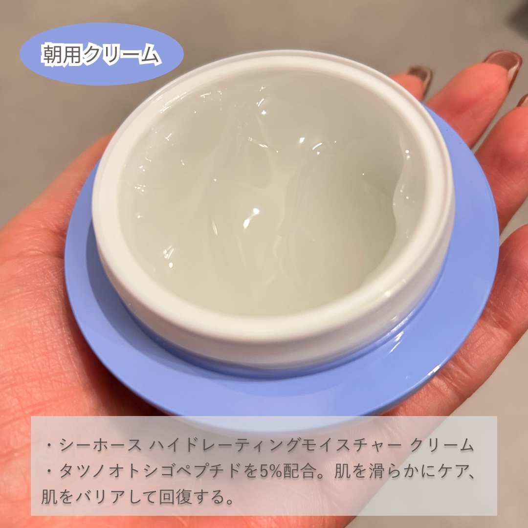 最高級の抗酸化物質である清浄な済州産の養殖タツノオトシゴ由来のトライペプチドを配合したクリーム。 ブルー×ゴールドのアンチオキシダントクリームは24K純金を配合。こってり濃厚なテクスチャーでしっとりとした高栄養クリーム。 ピンク×パープルのハイドレーティングモイスチャークリームはこってりしつつゲルのようなクリーム。
