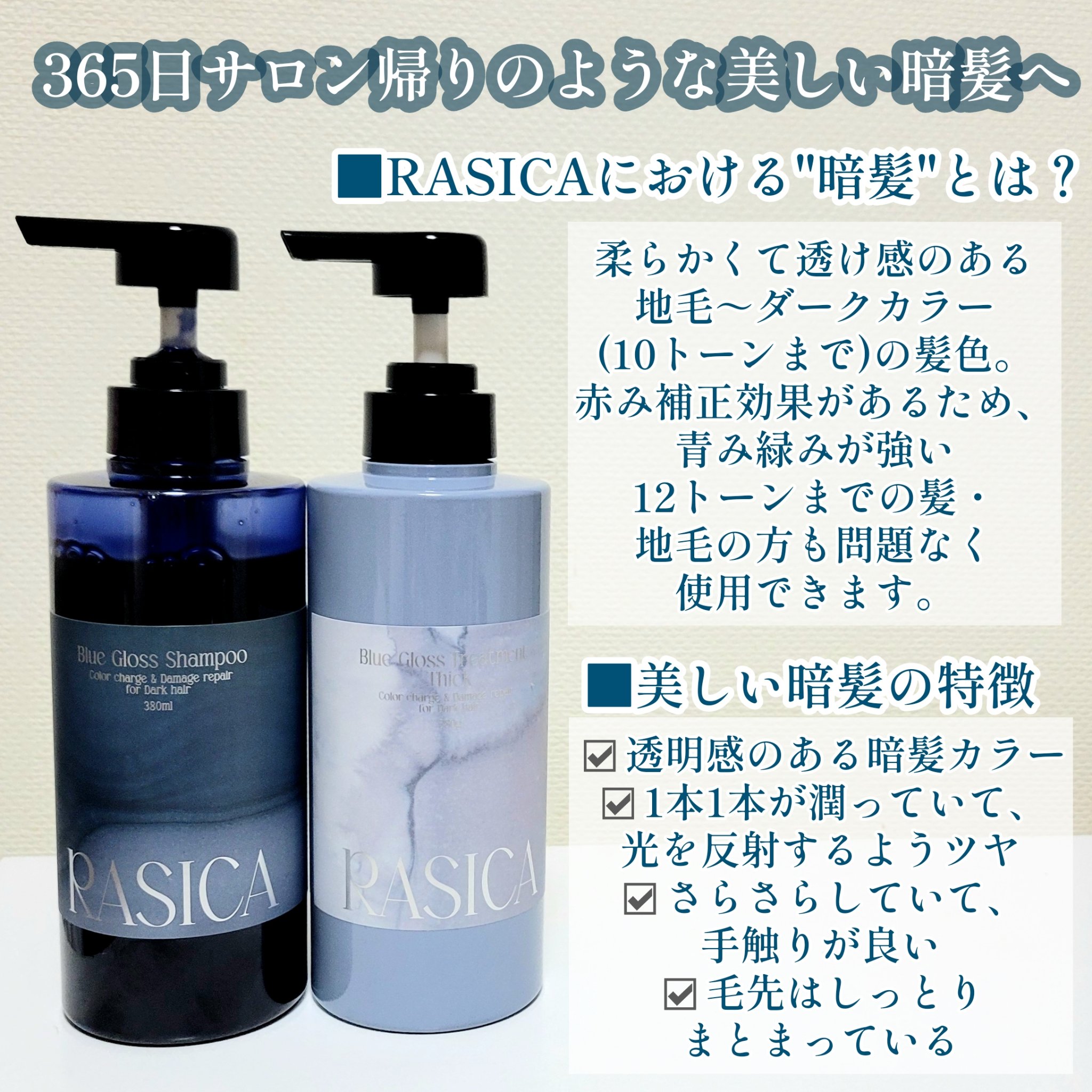 商品詳細情報rasica ブルーグロスシャンプー/トリートメント