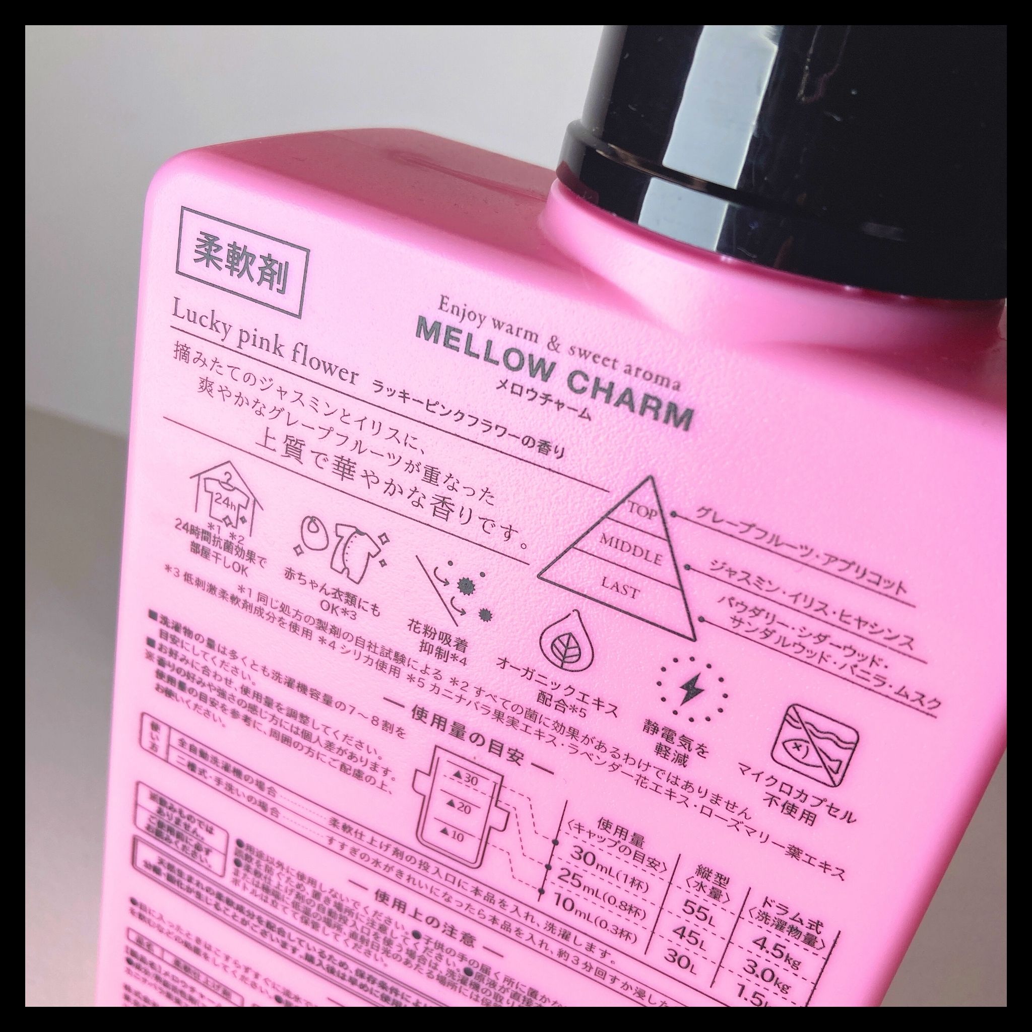 商品詳細情報MELLOW CHARM 柔軟剤ラッキーピンクフラワーの香り