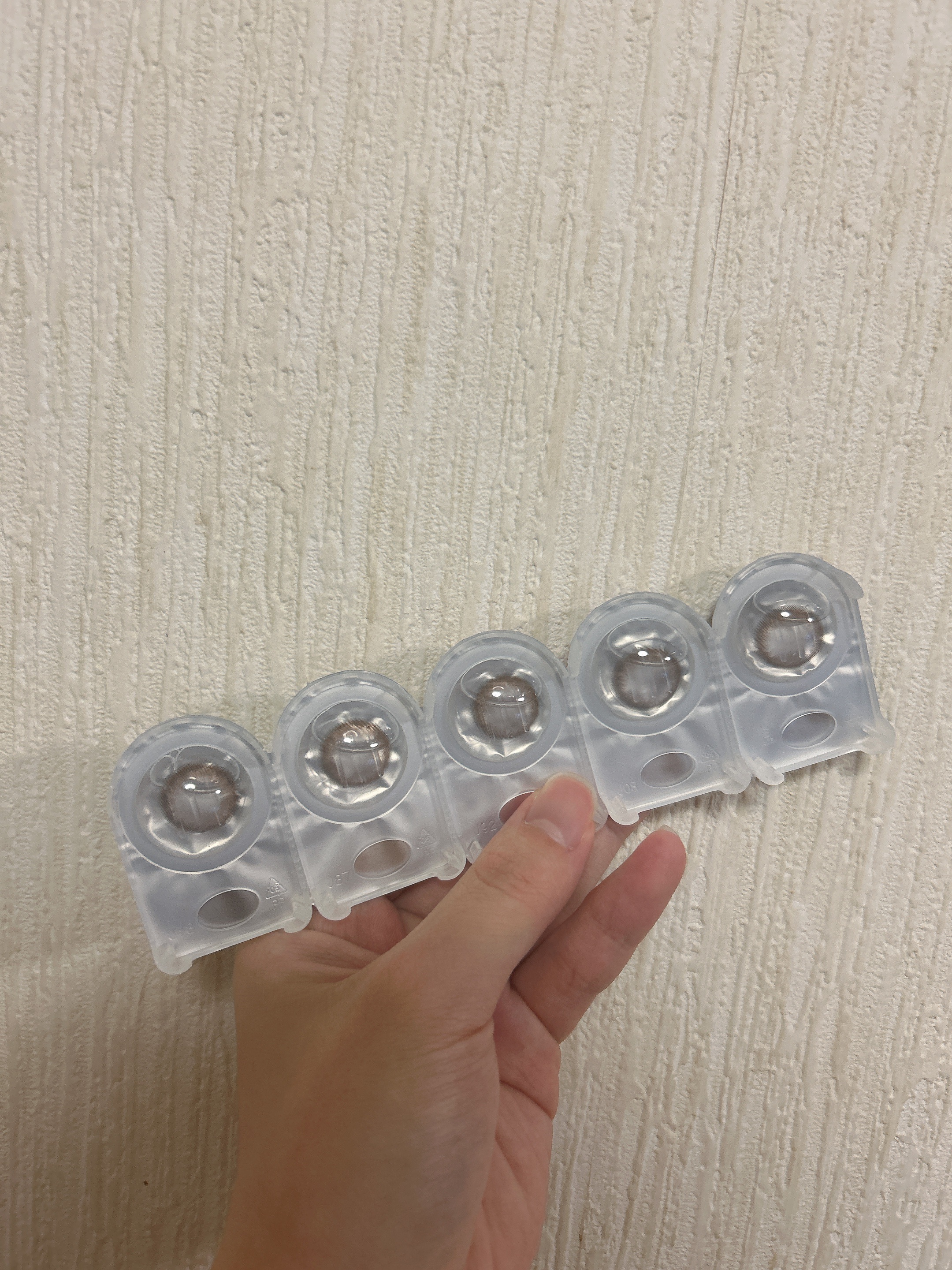 まず、このカラコンは低含水率でドライアイの人でも使用可能とかいてあり、 高含水率のカラコンしかつけたことない私は不安でしたが、そこまでの違和感はつけた瞬間からなく、1日ゴロゴロすることなくつけられました!しかも-10.00まで度数があります。 そしてこのパッケージ、、、本当に可愛すぎる。🐱 最初開封するのがもったいないくらいでした。笑笑 つけた感じは、グレーみが強い!という感じでもないです。私自身が元々茶目ぎみなのもありますが、宇宙人感やギャル感もないです。 私がつけた場合はグレージュという感じで、縁はグレー感があっても茶目感は残っていて、グレー?茶色??と、自分でも近くで見て迷うくらいの絶妙な色の瞳になります。 でも、しっかり盛れます。だし、ちょっとミステリアスな感じにも見えるので、自分的モテカラコンって感じでした! 茶色の髪の毛の人がつけると、より抜け感が出て可愛いのではないかと思いました!