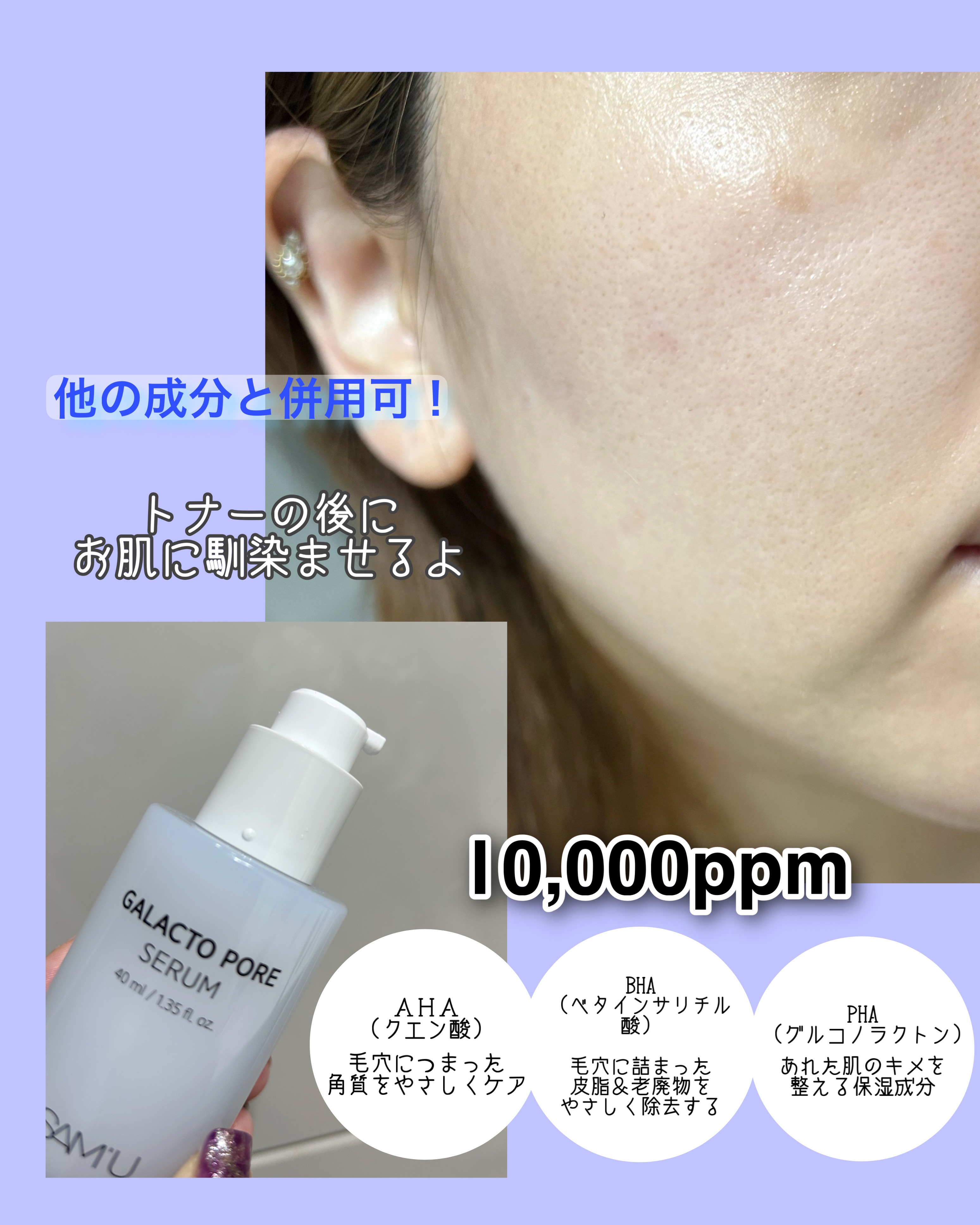 毛穴まんじゅう撲滅セラム 【ガラクトポアセラム】 ガラクトミセス核心成分で7重毛穴ケア ・AHA+ BHA+PHAの配合で、敏感肌も刺激なく老廃物をやさしく除去 べたつきのないサッパリとしたテクスチャー つっぱったりはしないよ🩵